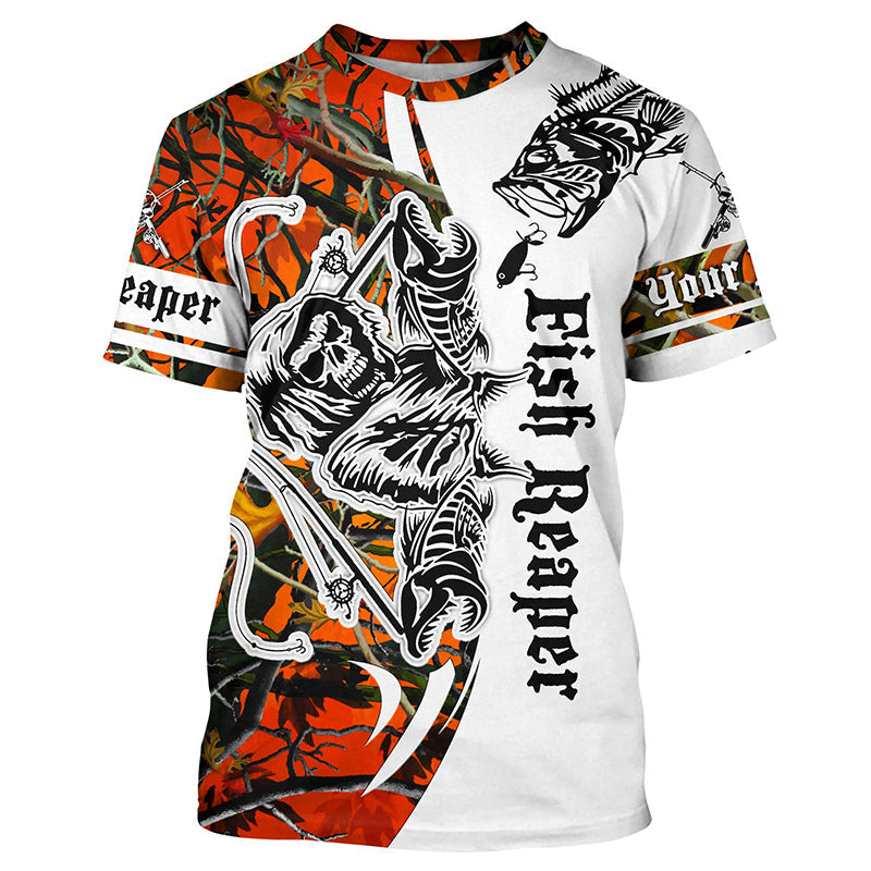 BlueJose Halloween Fish Skeleton Custom Name Long Sleeve Fishing Shirts