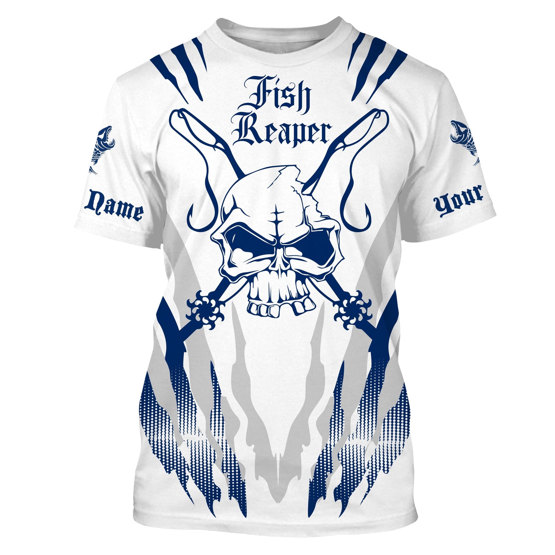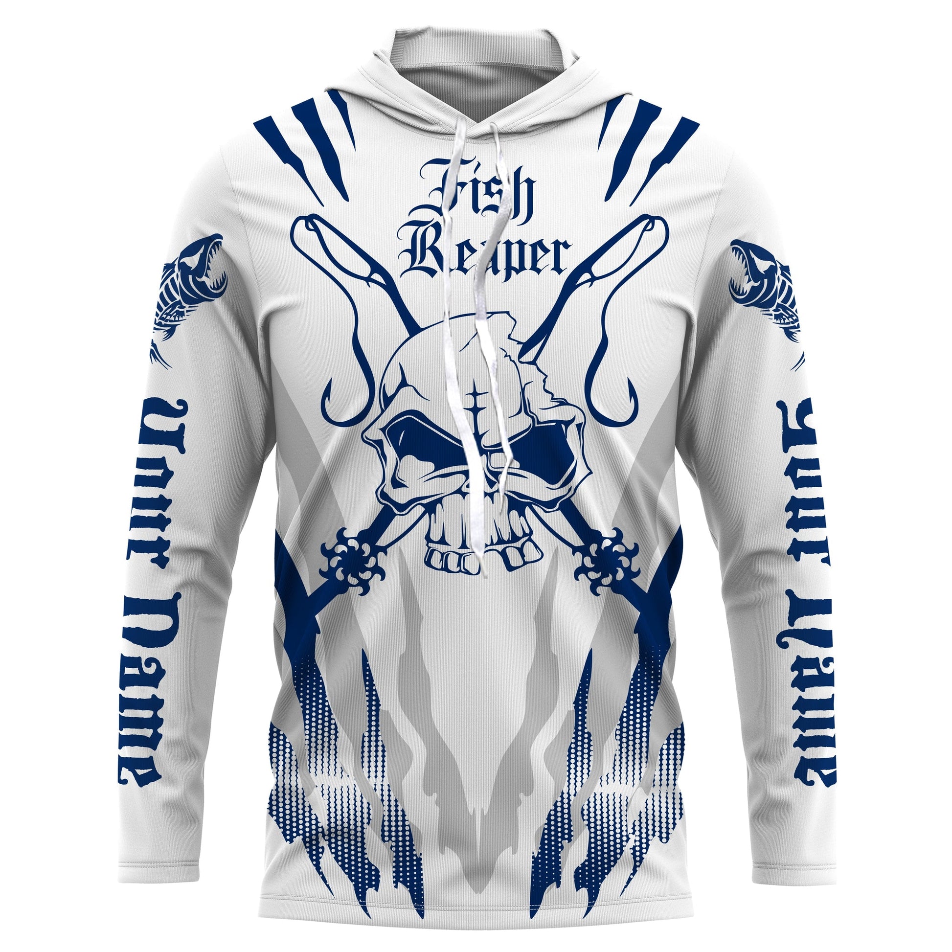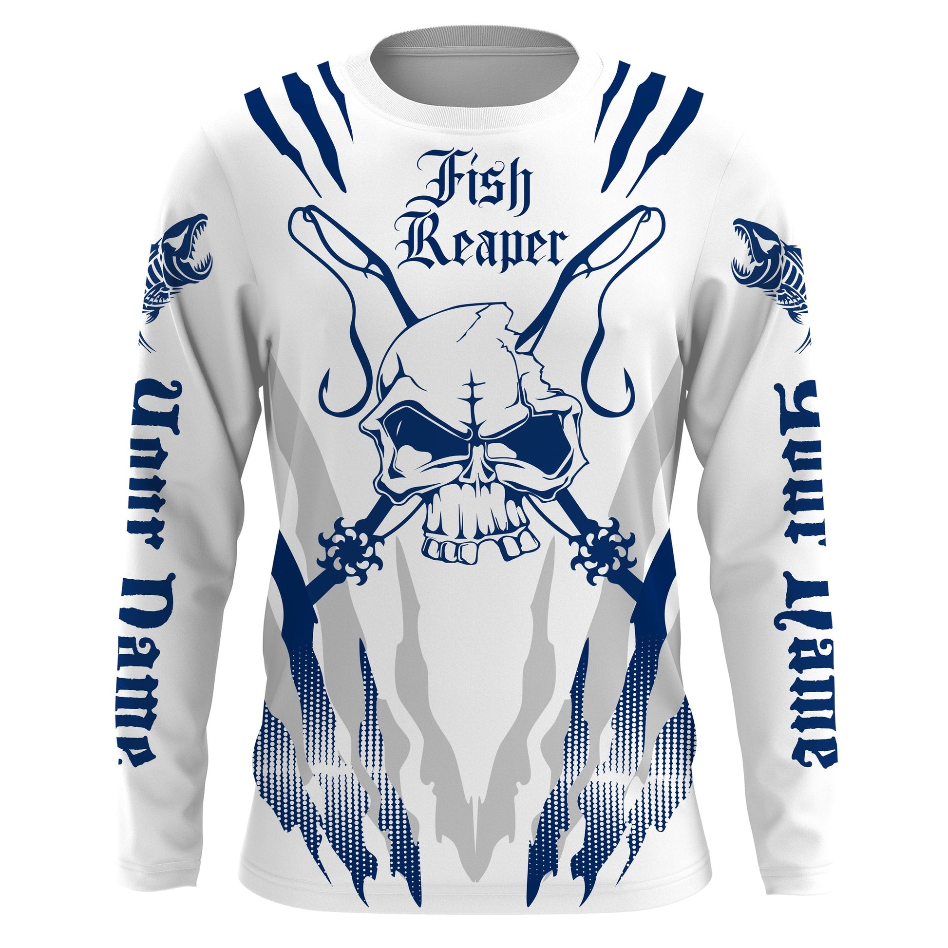 BlueJose Halloween Skull Fish Reaper Custom Long Sleeve Fishing Shirts