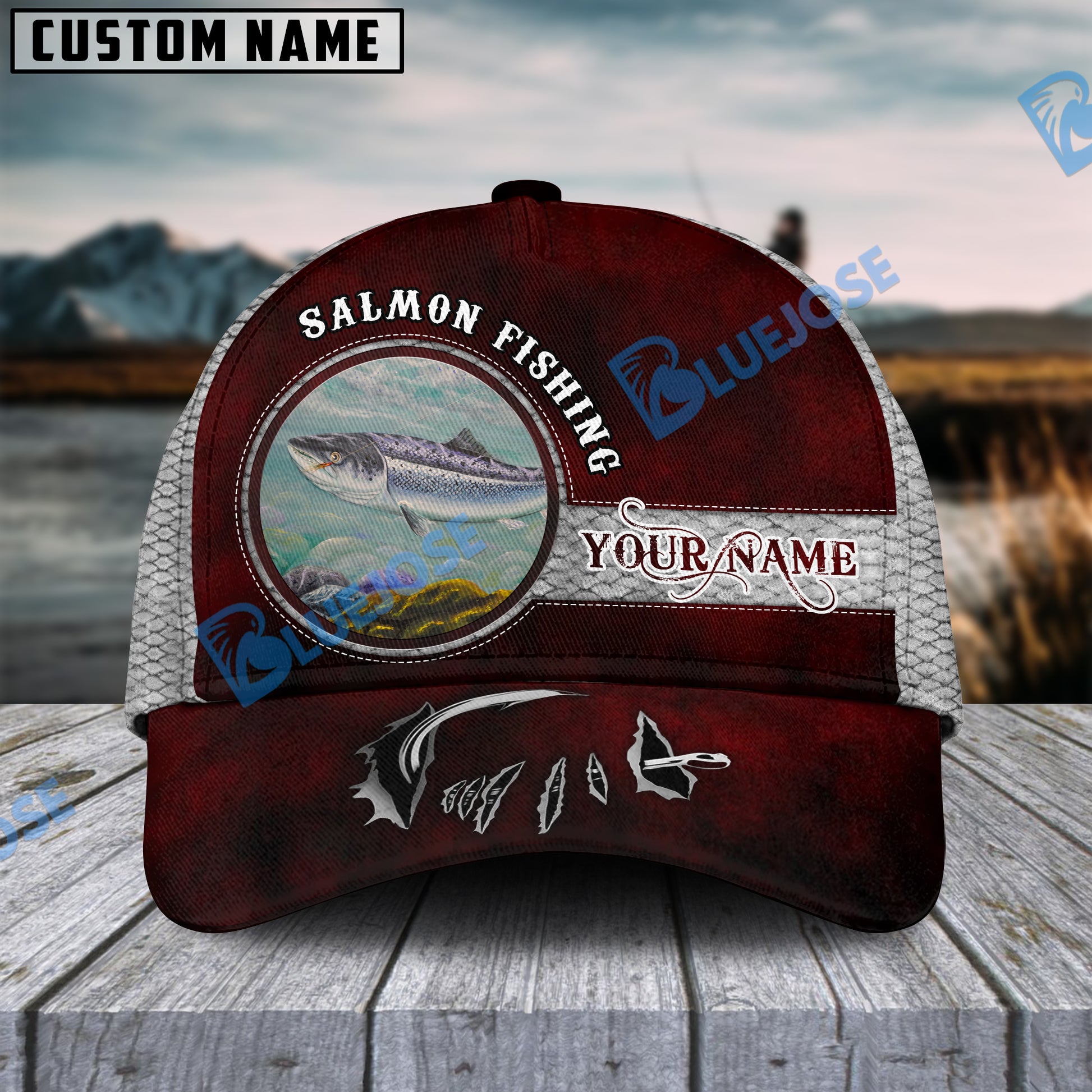 BlueJose Happy Fishing Salmon Fish Personalized Cap