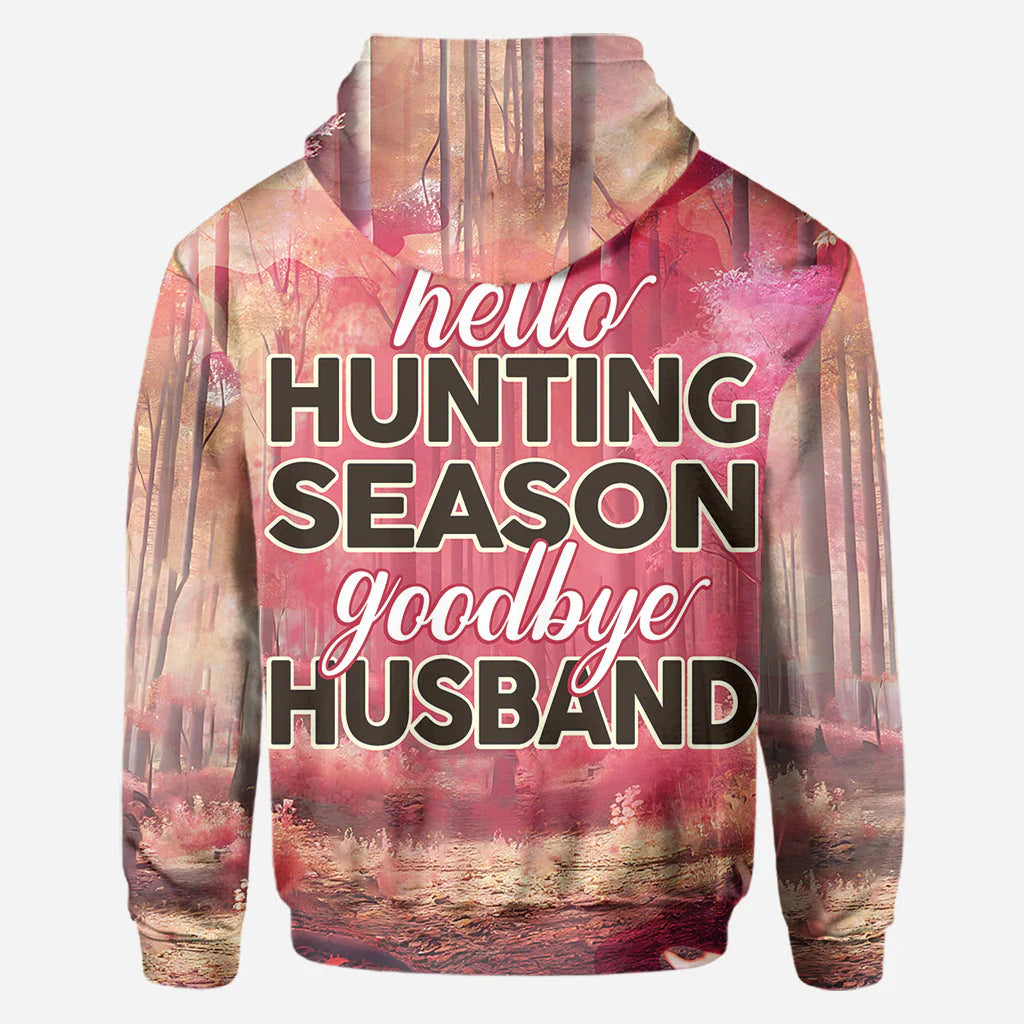 BlueJose Hello Hunting Season Goodbye Husband, Personalized Hunting All Over Shirt, Personalized 3D Hoodie For Hunting Lover