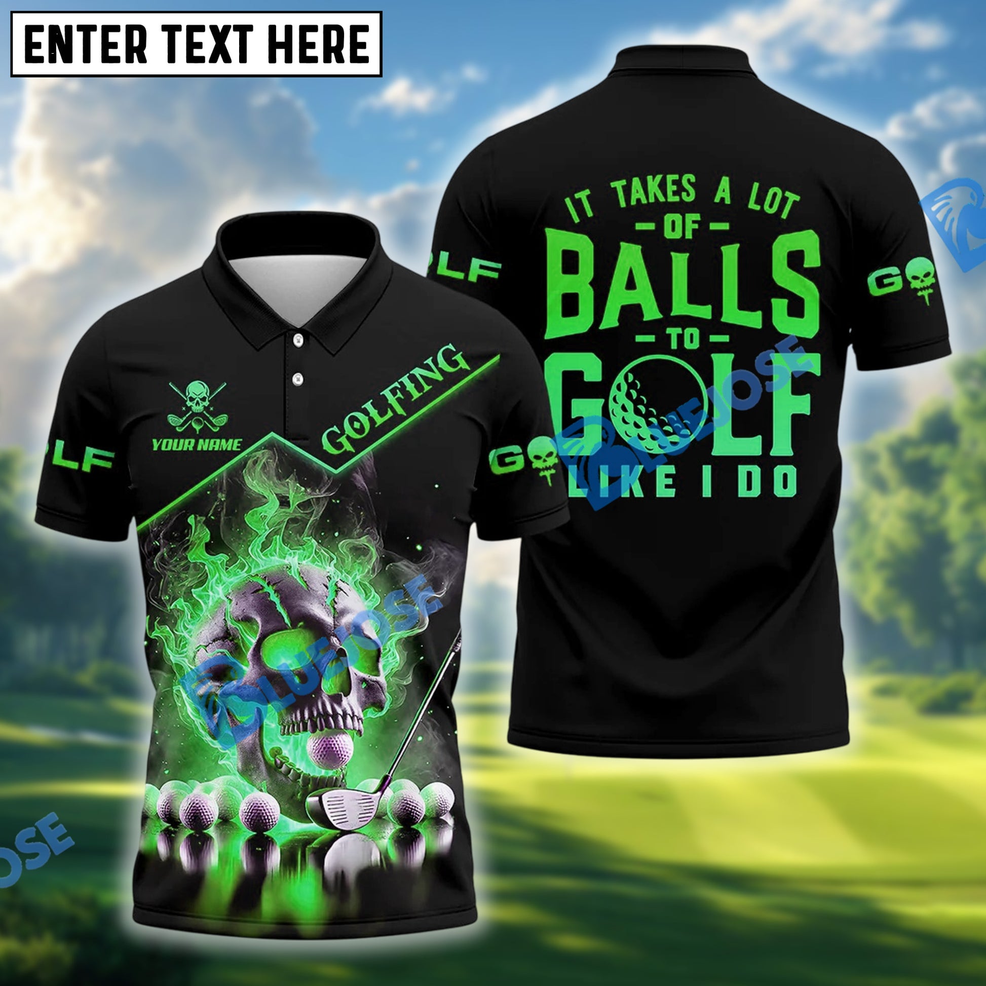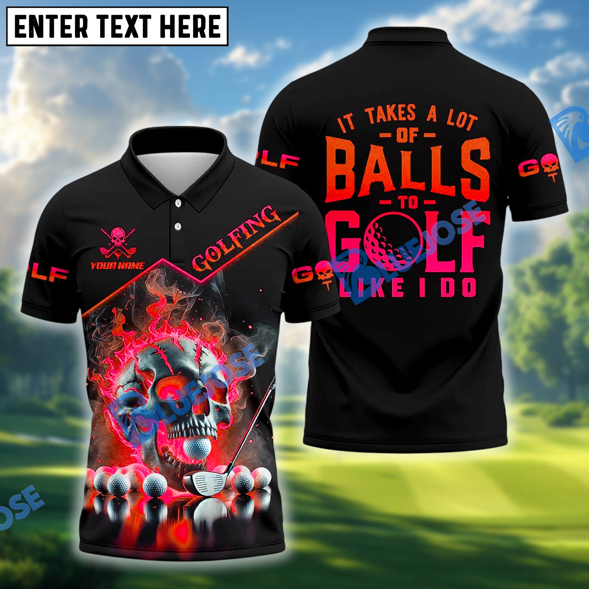 BlueJose Skull Ball Golf Shirt Customized Name, Team Name 3D Shirts (4 Colors)