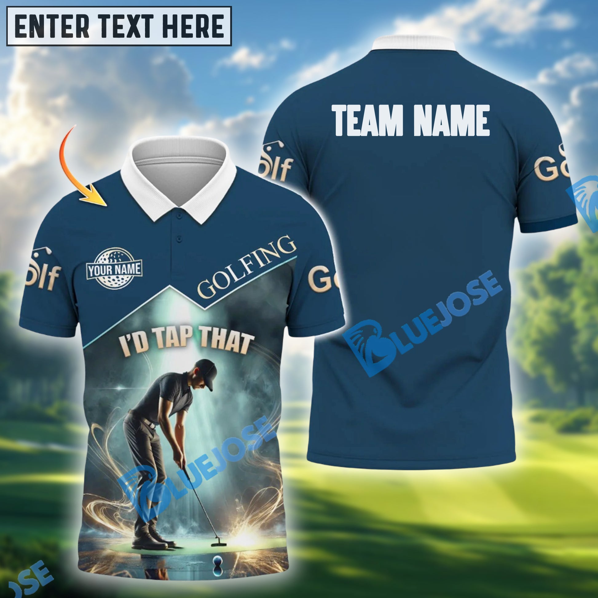 BlueJose I'd Tap That Funny Golf Shirt, Custom Name & Team Name Golf 3D Shirts
