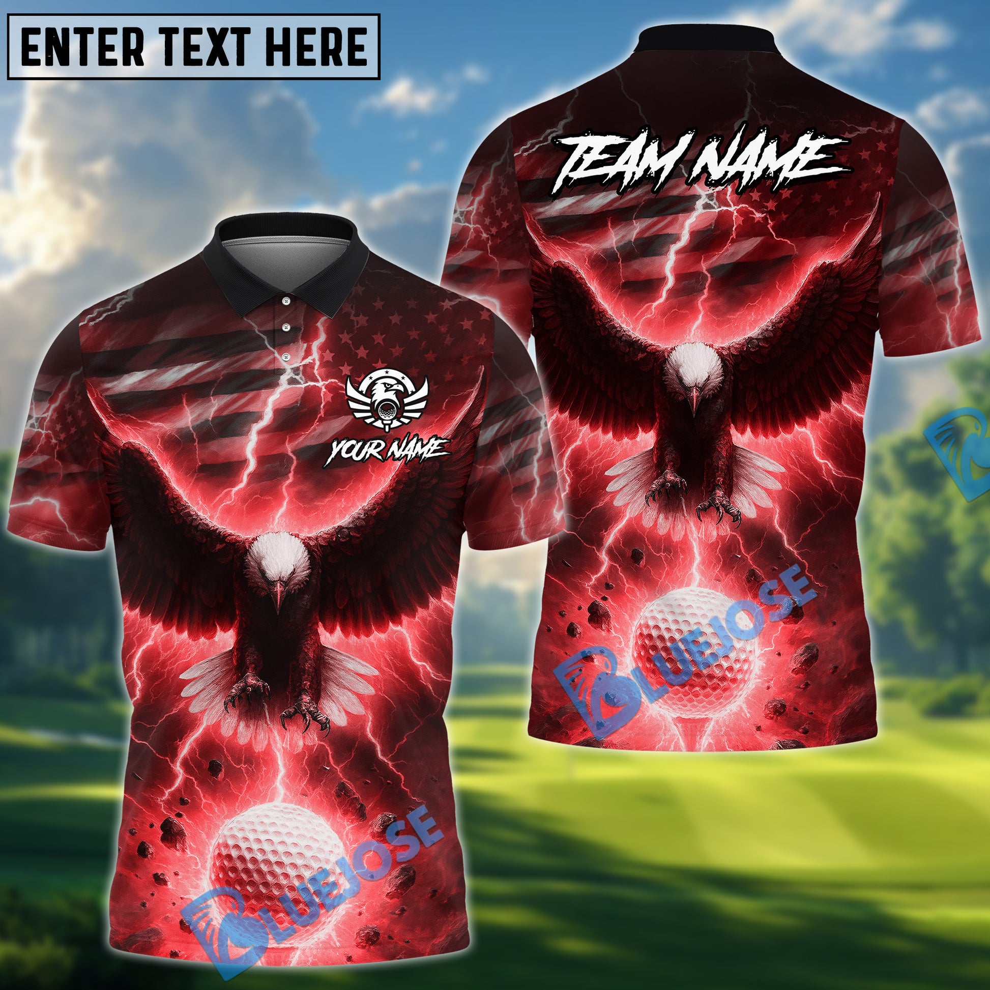 BlueJose Lightning Strike Eagle Golf Shirt, Customized Name & Team Name 3D Shirts (4 Colors)