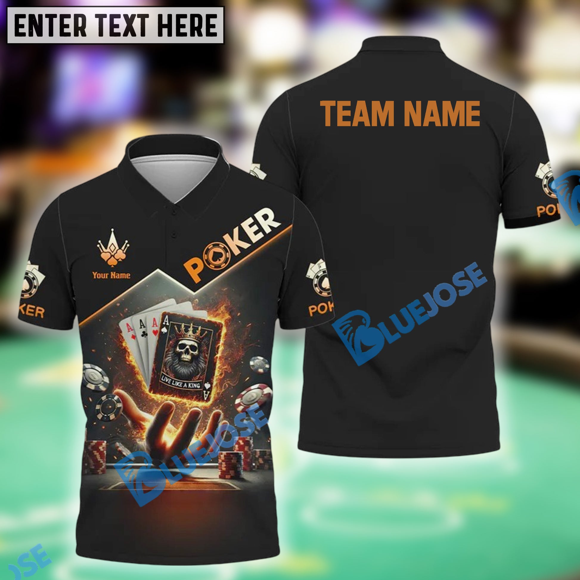 BlueJose Live Like a King-Skull King Card Poker Shirt, Custom Name & Team Name 3D Shirts