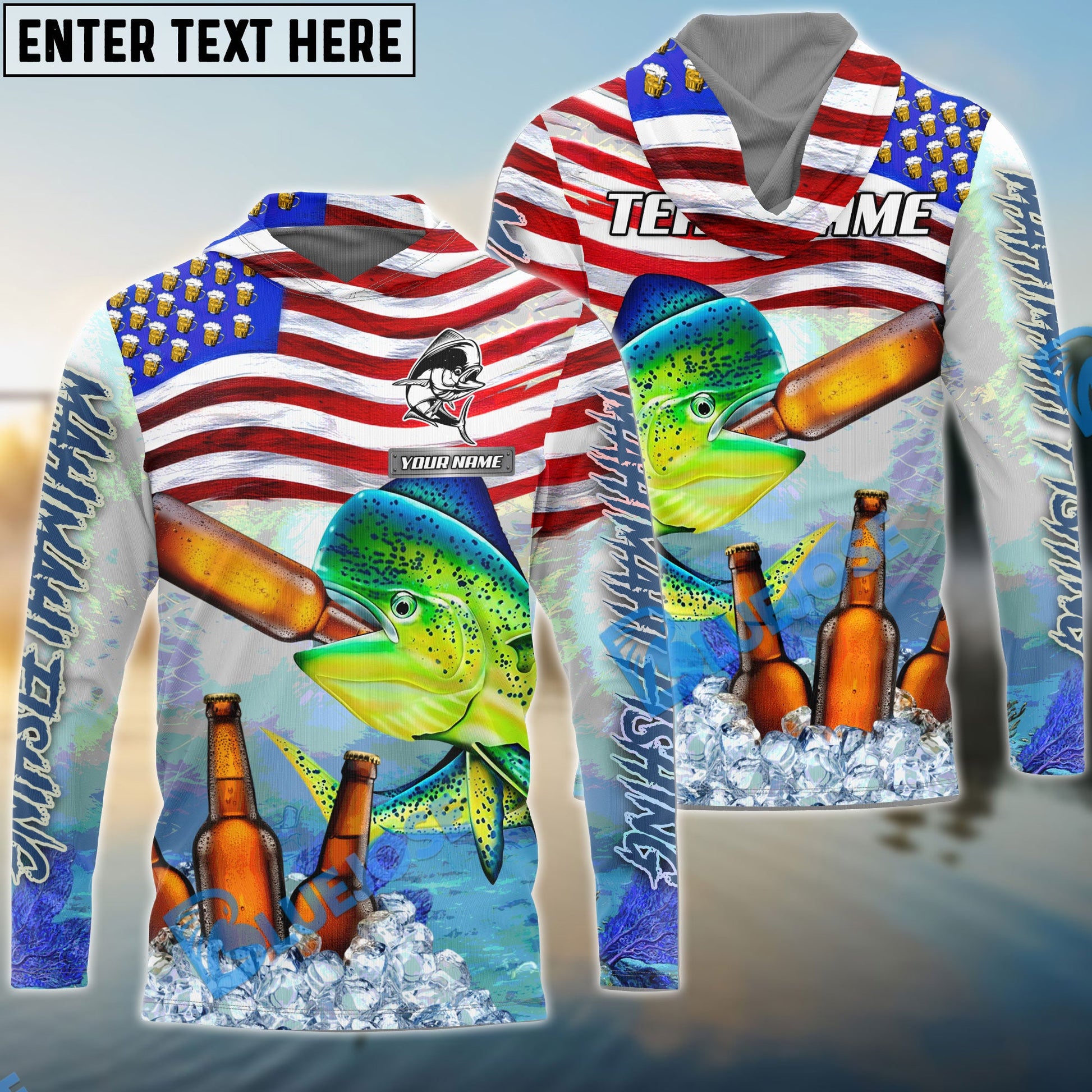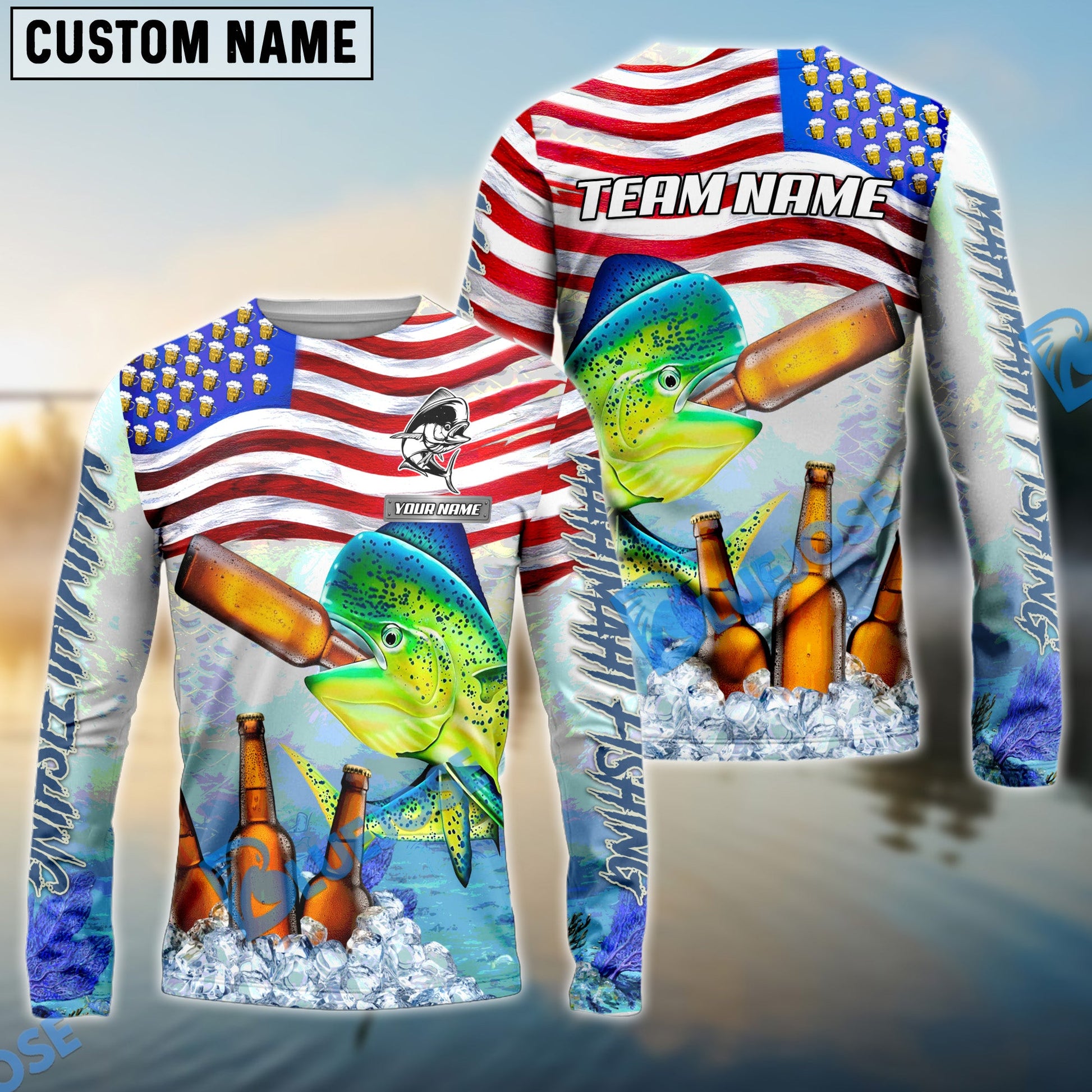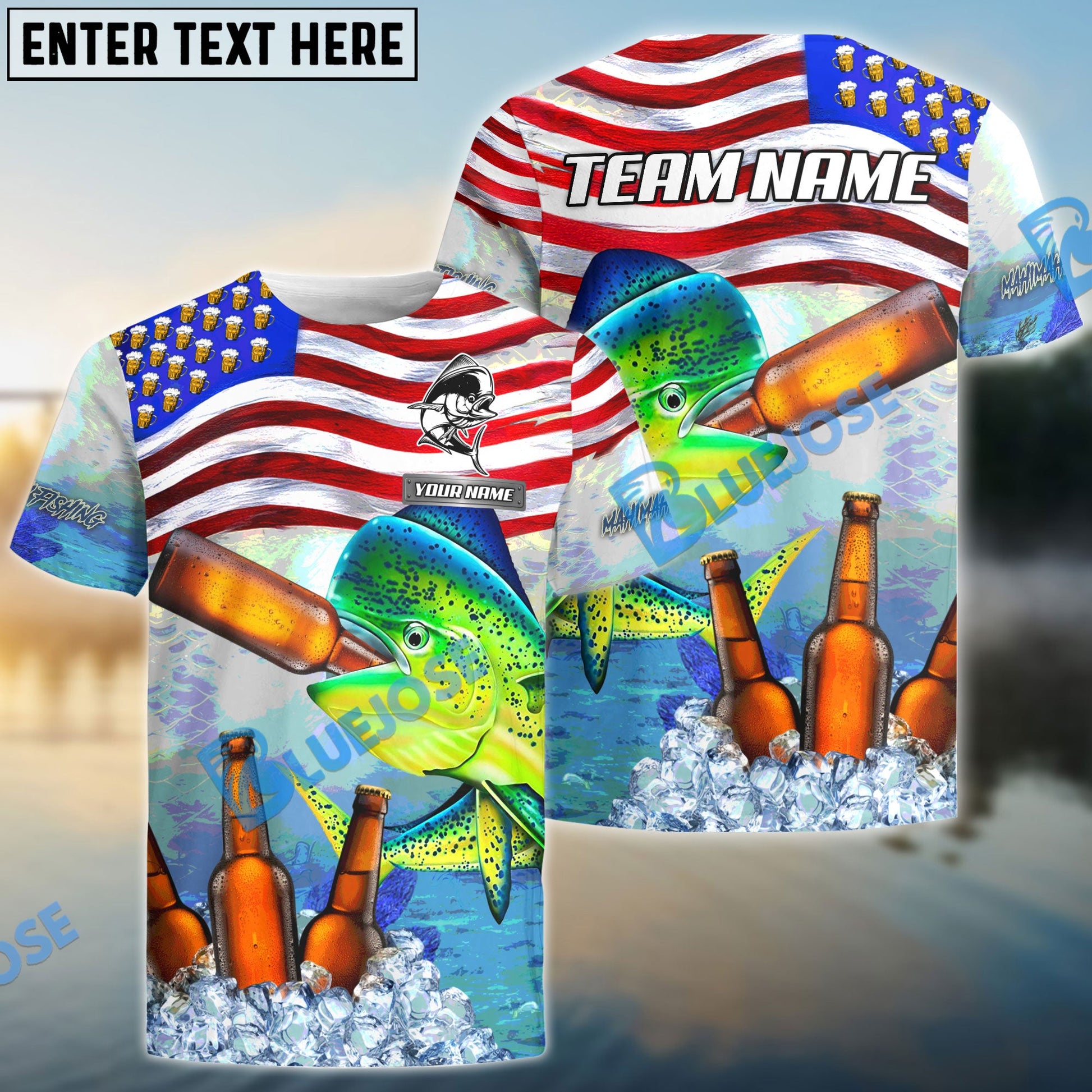 Bluejose Mahi-mahi Fishing American Flag Beer Custom Name & Team Name 3D Shirts