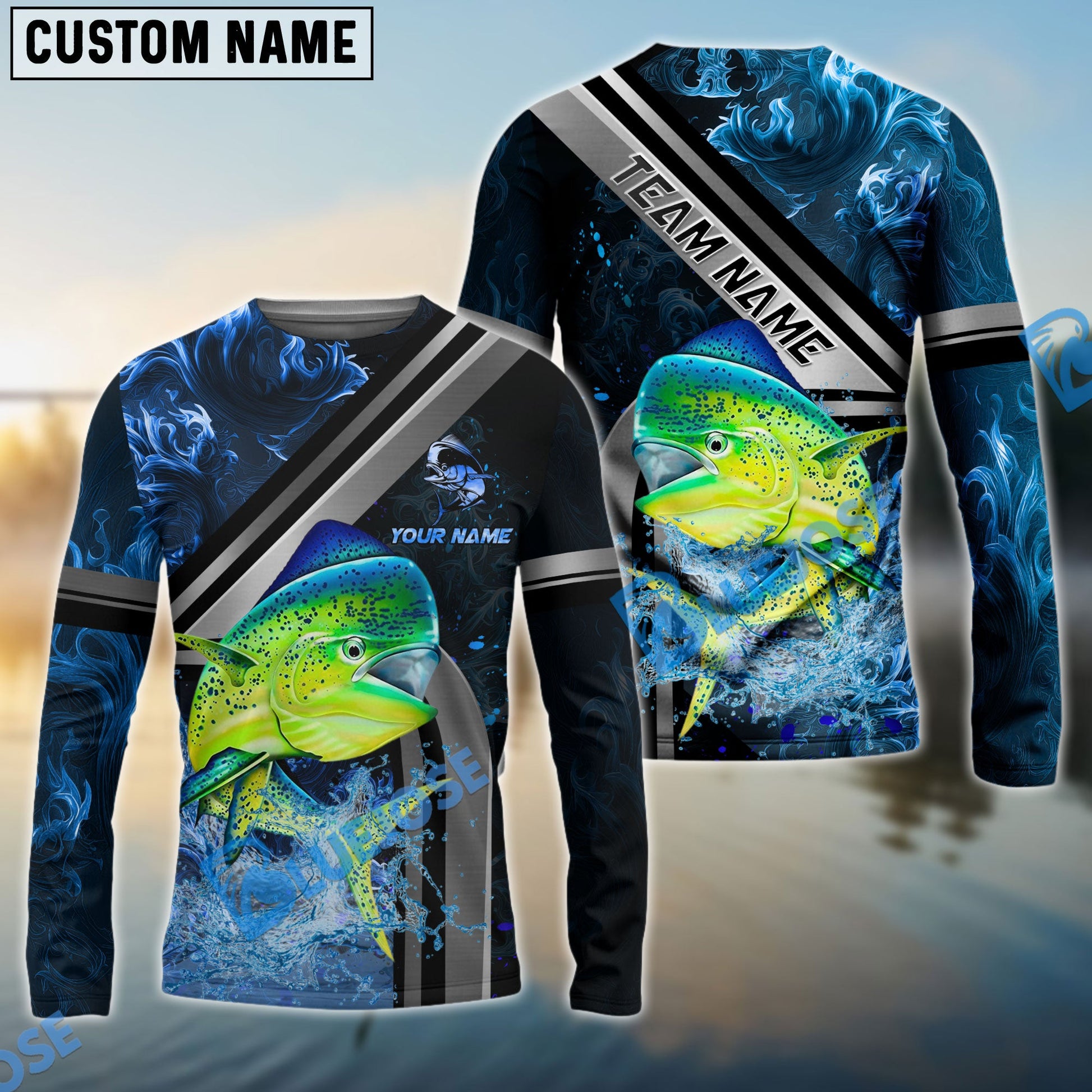 Bluejose Mahi-mahi Fishing Ocean Wave Power Custom Name & Team Name 3D Shirts