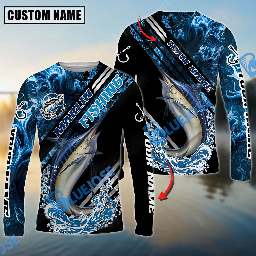 Bluejose Marlin Fishing Blue Smoke Water Pattern Custom Name & Team Name 3D Shirts