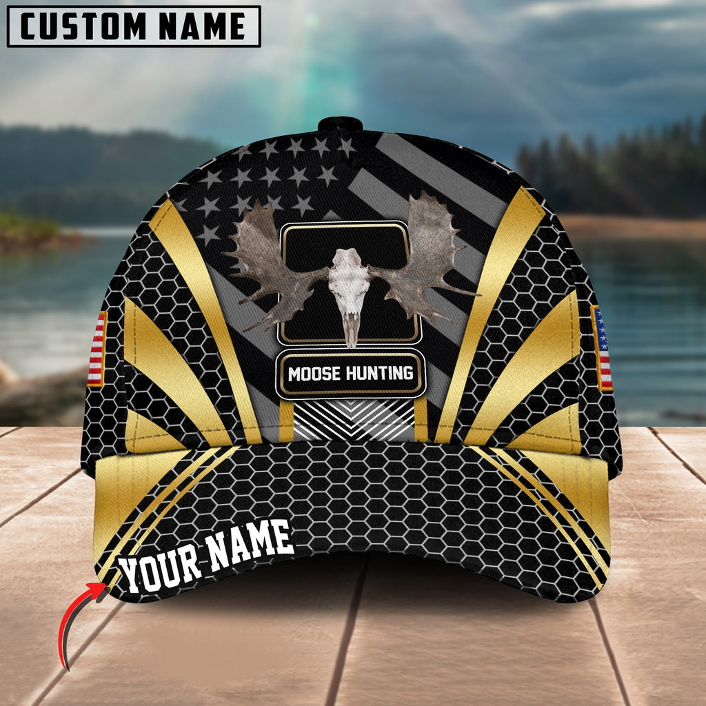 BlueJose Moose Hunting Hexagon Pattern Multicolor Personalized Name 3D Cap (4 Colors)