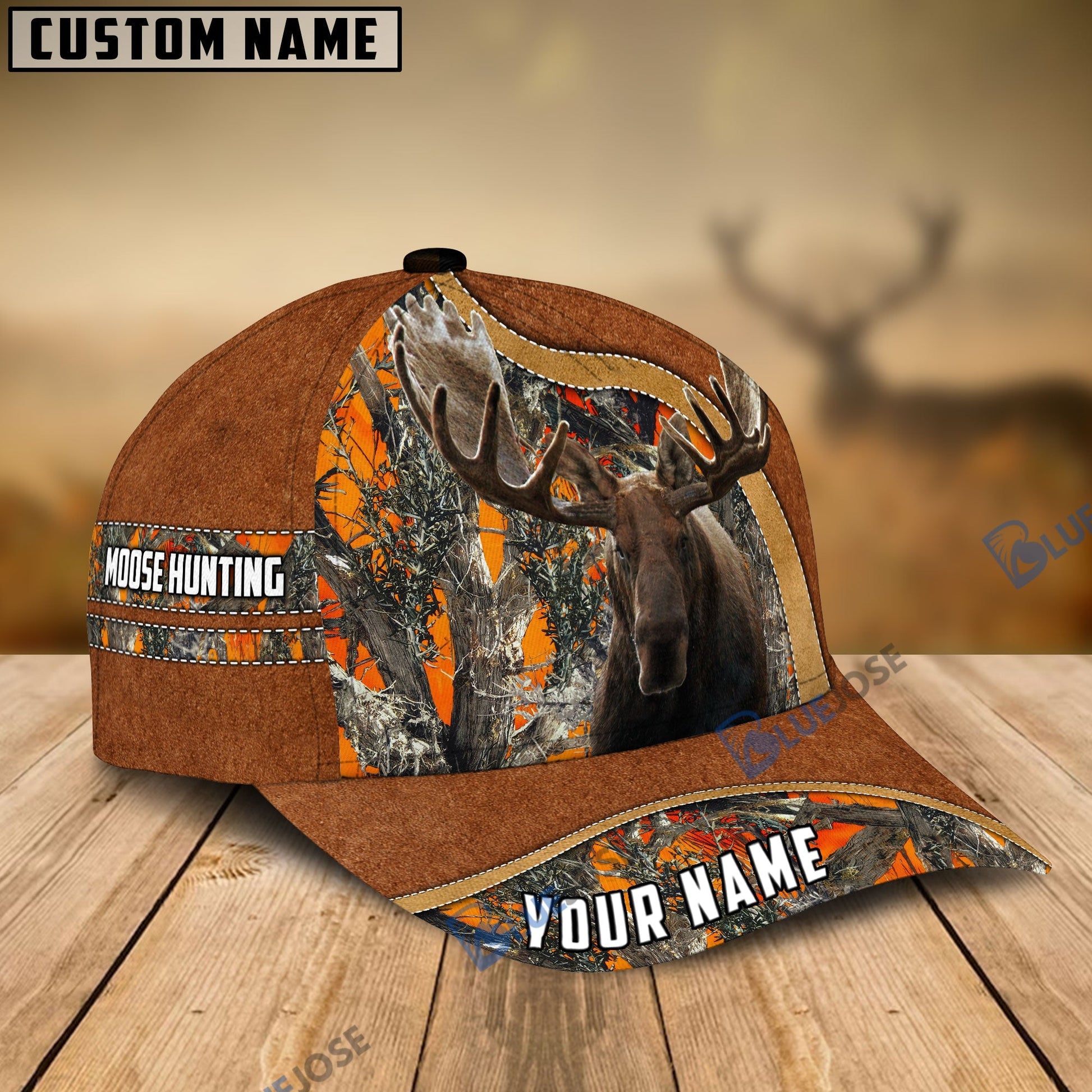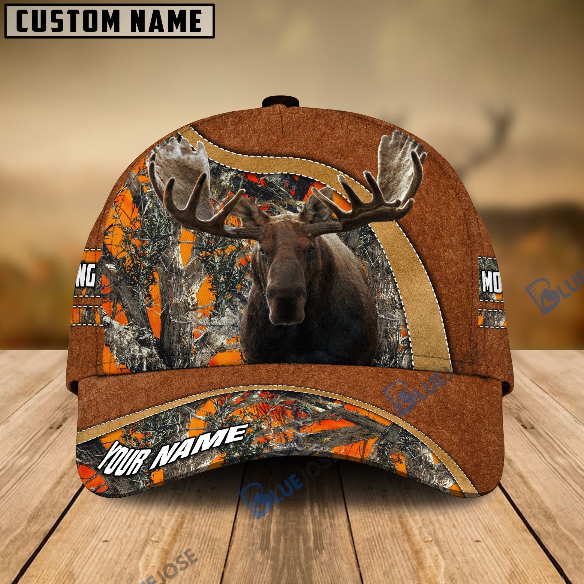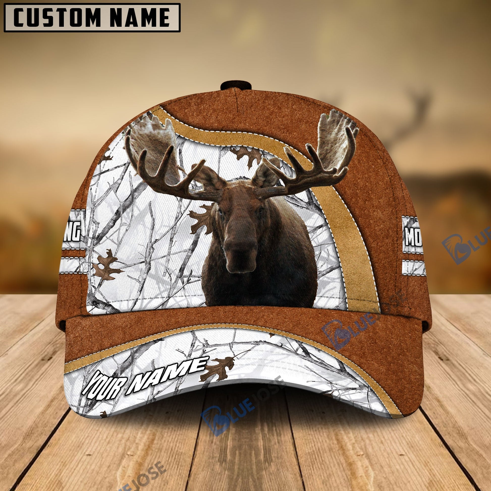 BlueJose Moose Hunting Light Brown Leather Pattern Personalized Name Cap