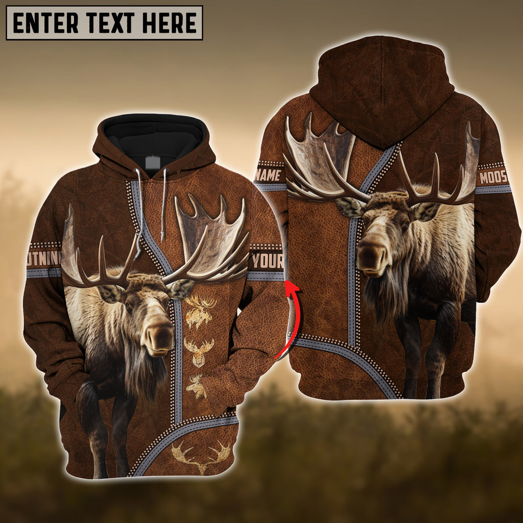 BlueJose Moose Premium Zipper Leather Pattern Personalized 3D Hoodie