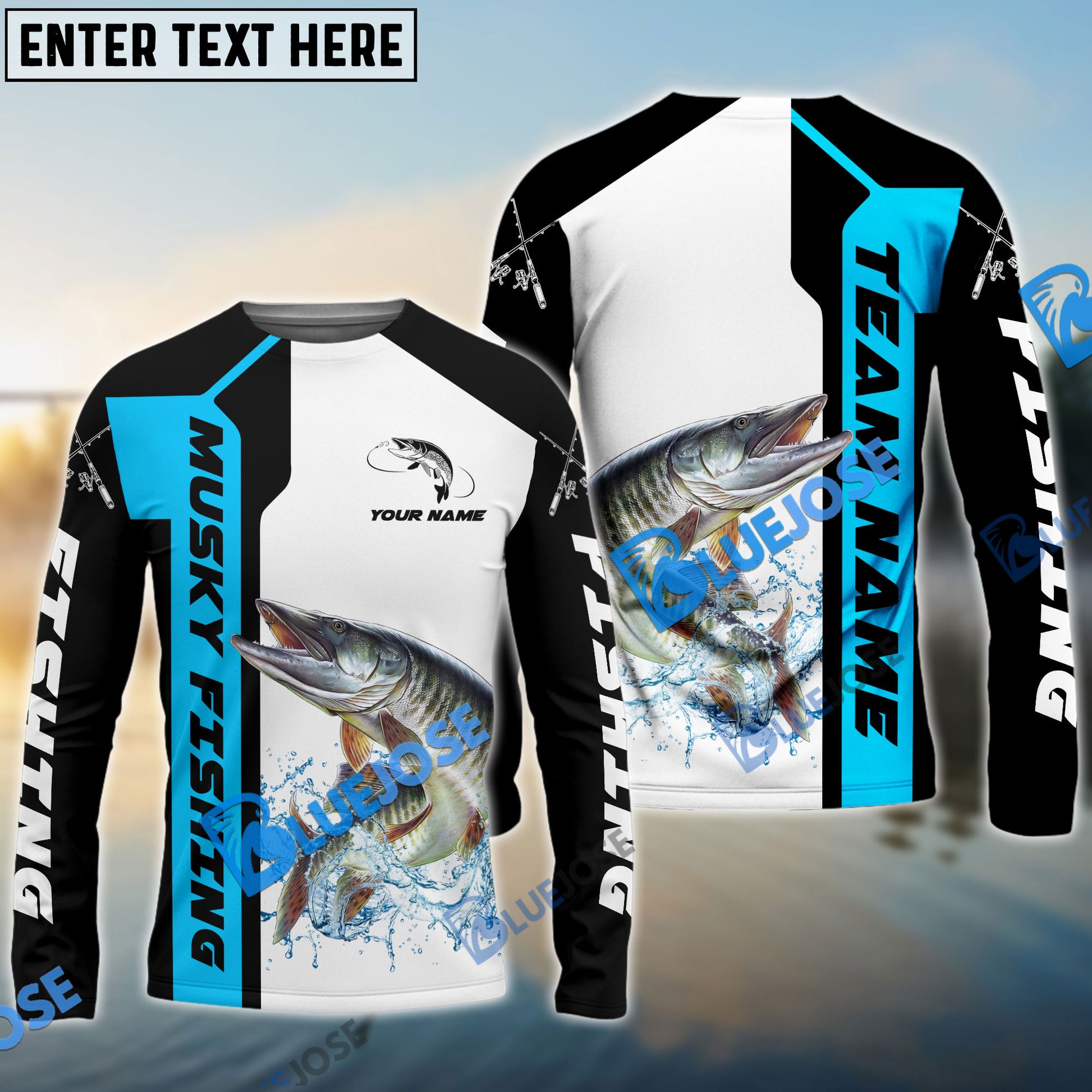 Bluejose Musky Fishing Blue Line Sport Custom Name & Team Name 3D Shirts