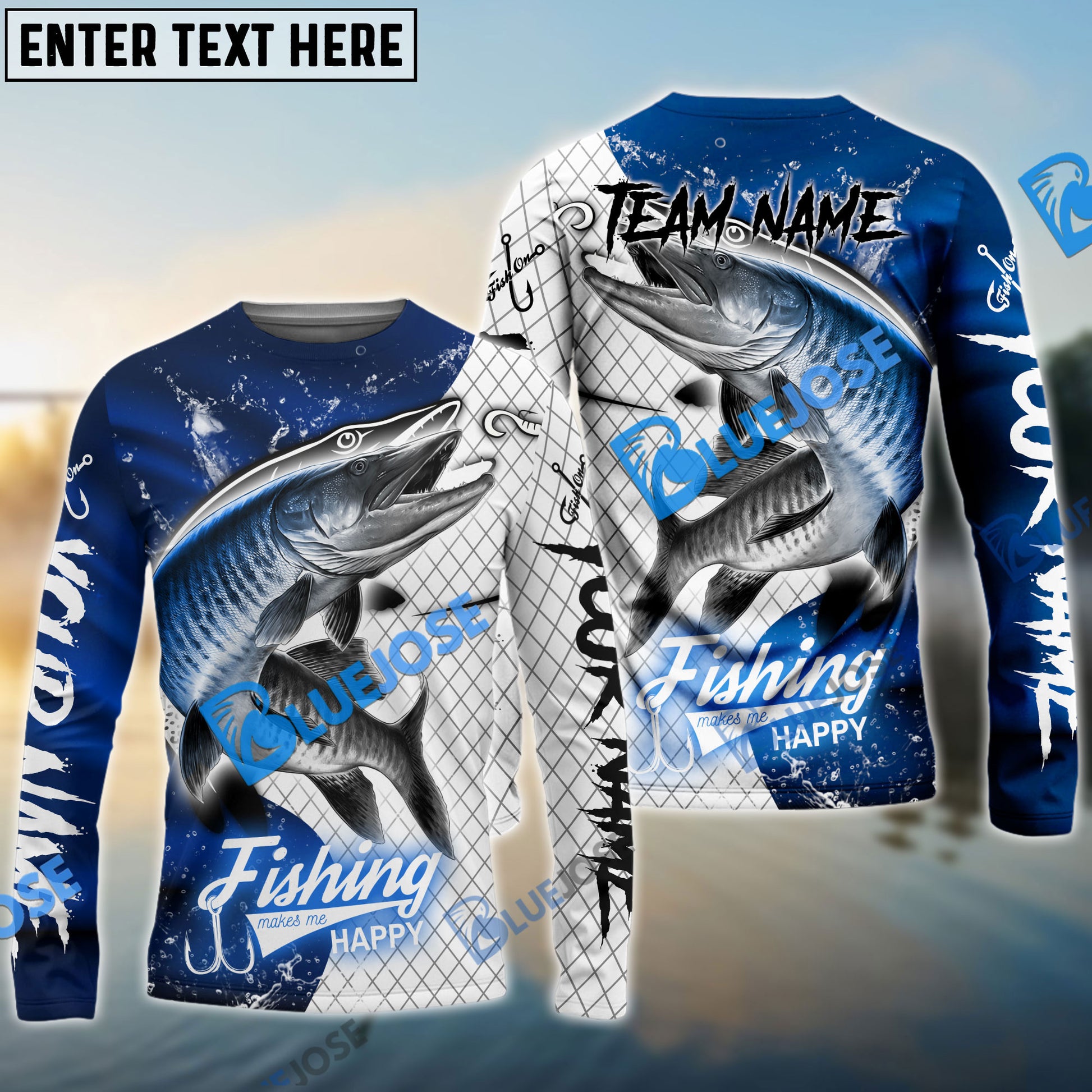 Bluejose Musky Fishing Dark Blue Skin Sport Custom Name & Team Name 3D Shirts