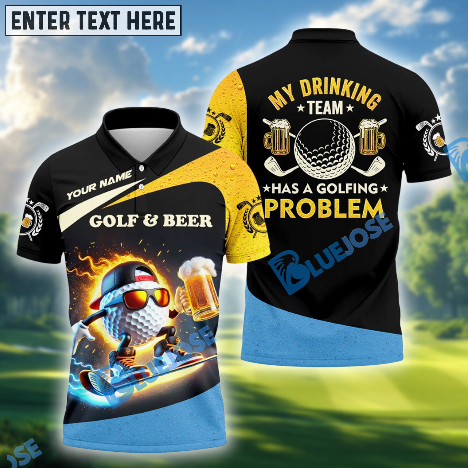 BlueJose My Drinking Team Has A Golfing Problem Funny Golf Polo Shirt, Custom Name Golf 3D Shirts