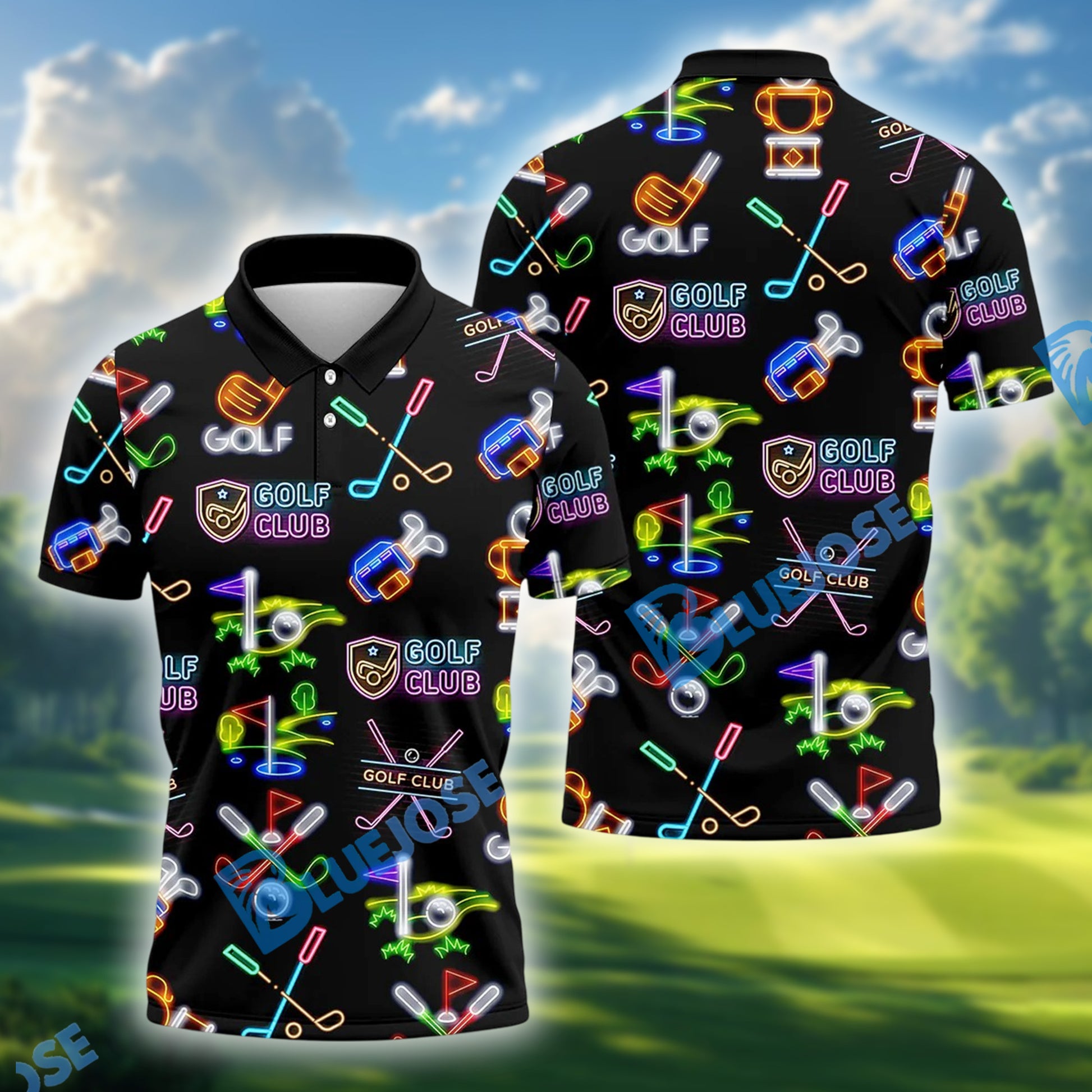 BlueJose Neon Golf Clubs Golf Polo Shirt, Custom Name & Team Name Golf 3D Shirts