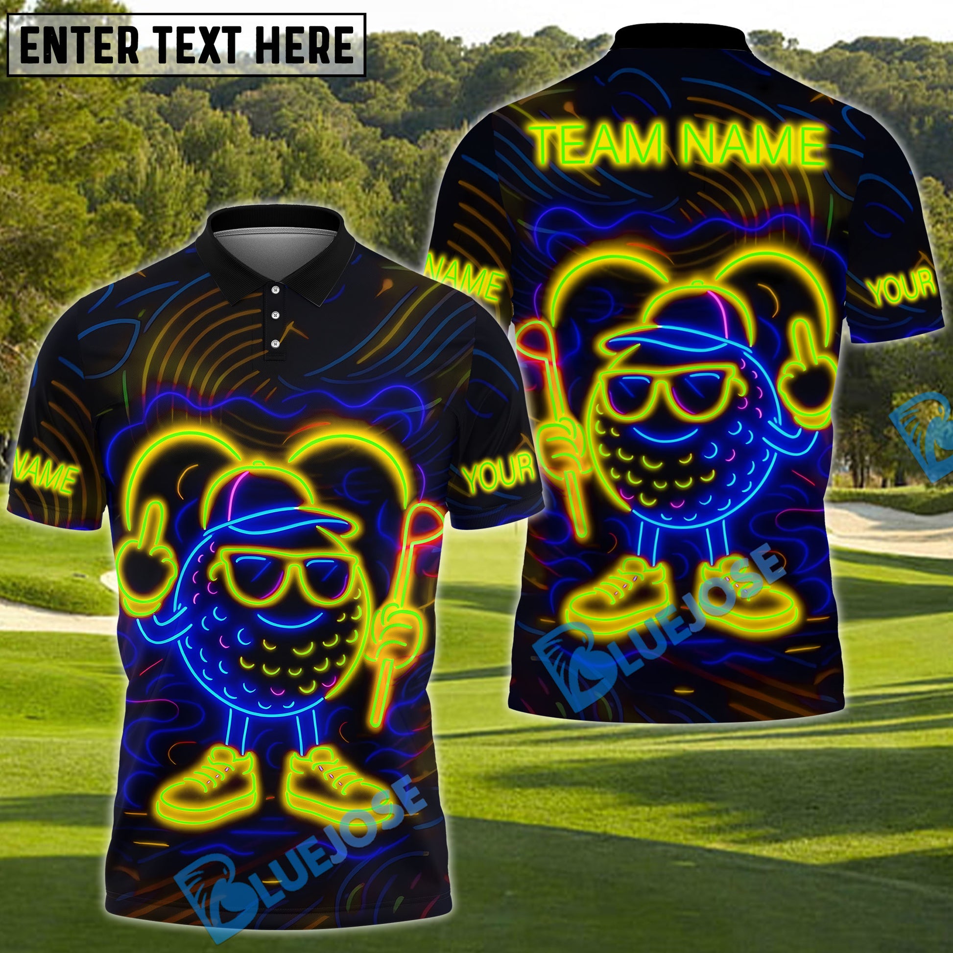 BlueJose Neon Swing Ball Golf Polo Shirt, Customized Name & Team Name 3D Shirts (4 Colors)