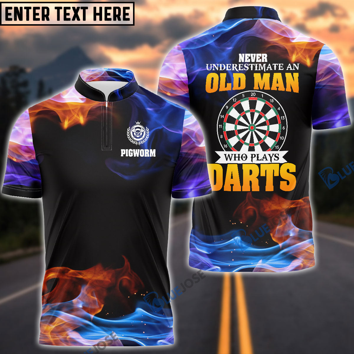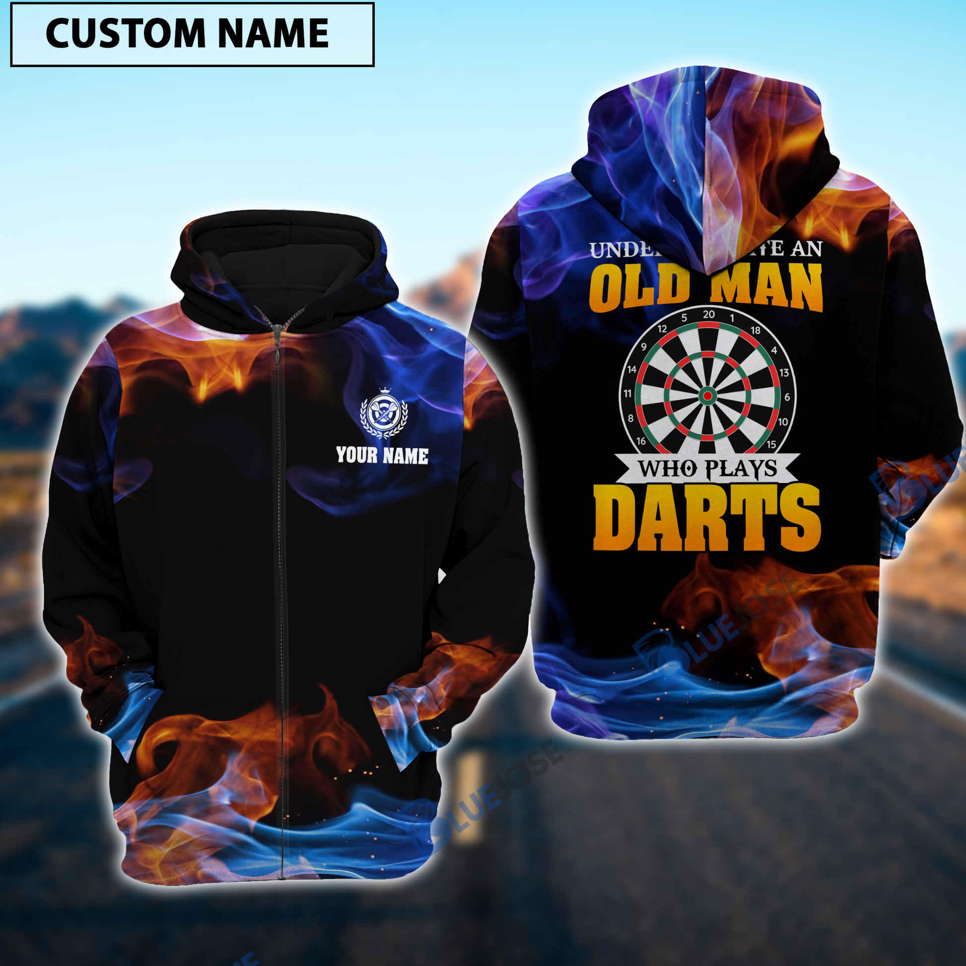 BlueJose Never Underestimate An Old Man Who Play Darts Personalized Name 3D Shirt