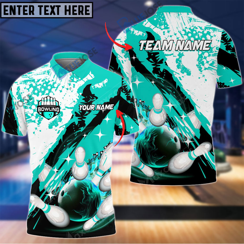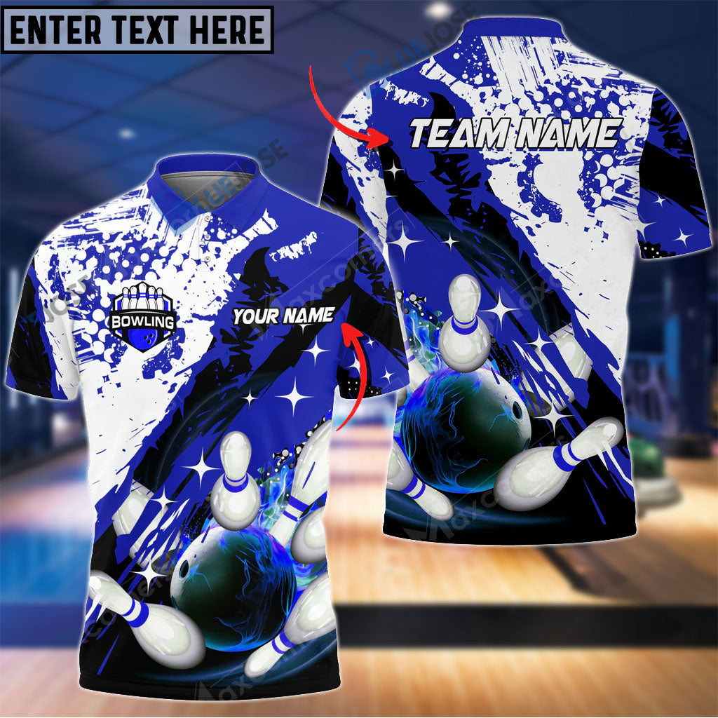 BlueJose Paint Slash Flame Bowling And Pins Customized Name 3D Shirt (4 Colors)