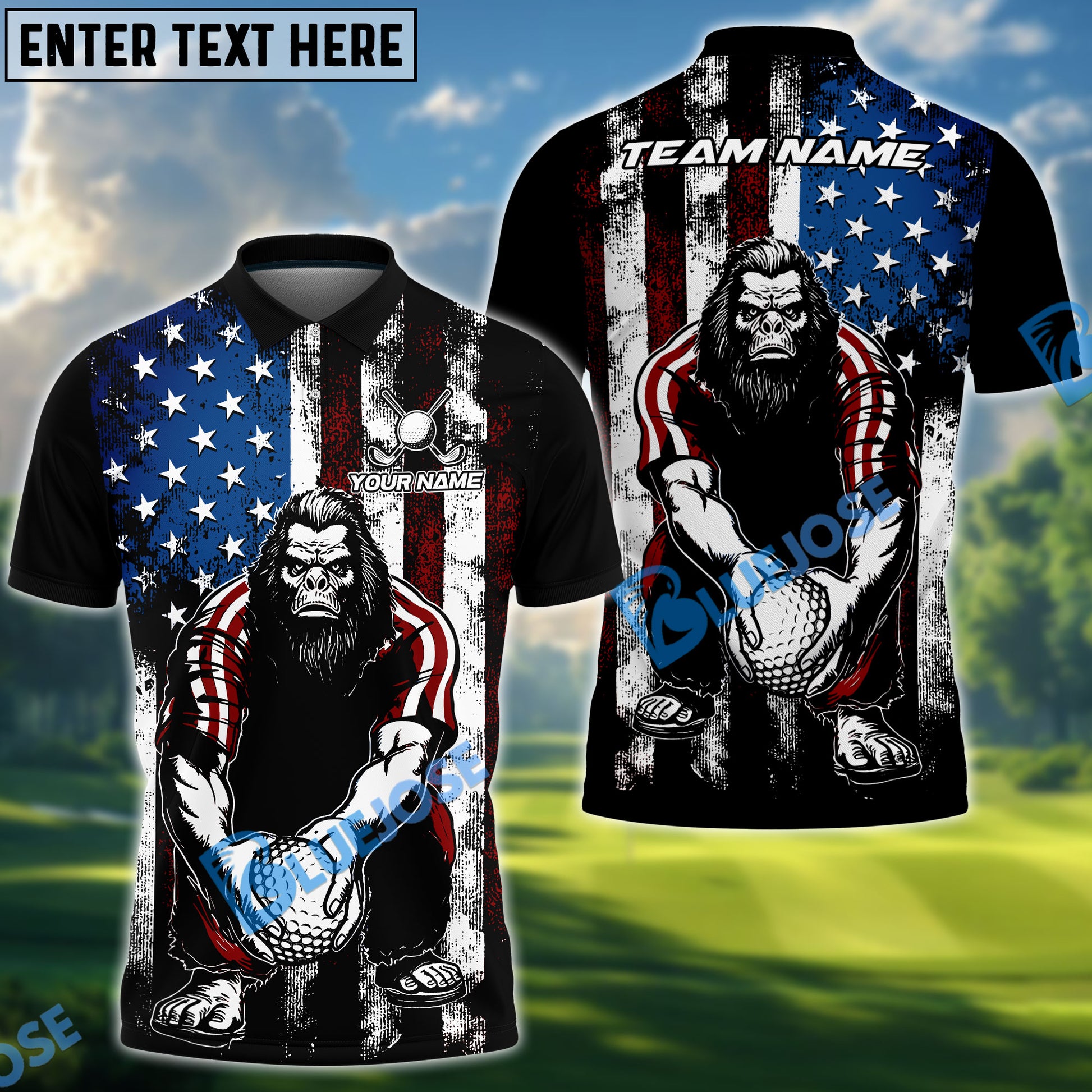 BlueJose Patriot Swing Bigfoot Funny Golf Polo Shirt, Custom Name & Team Name 3D Shirts
