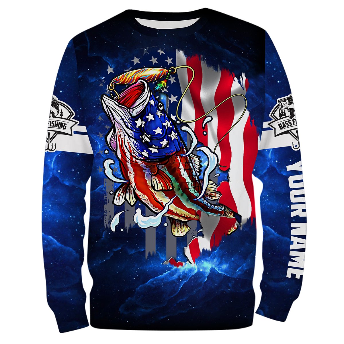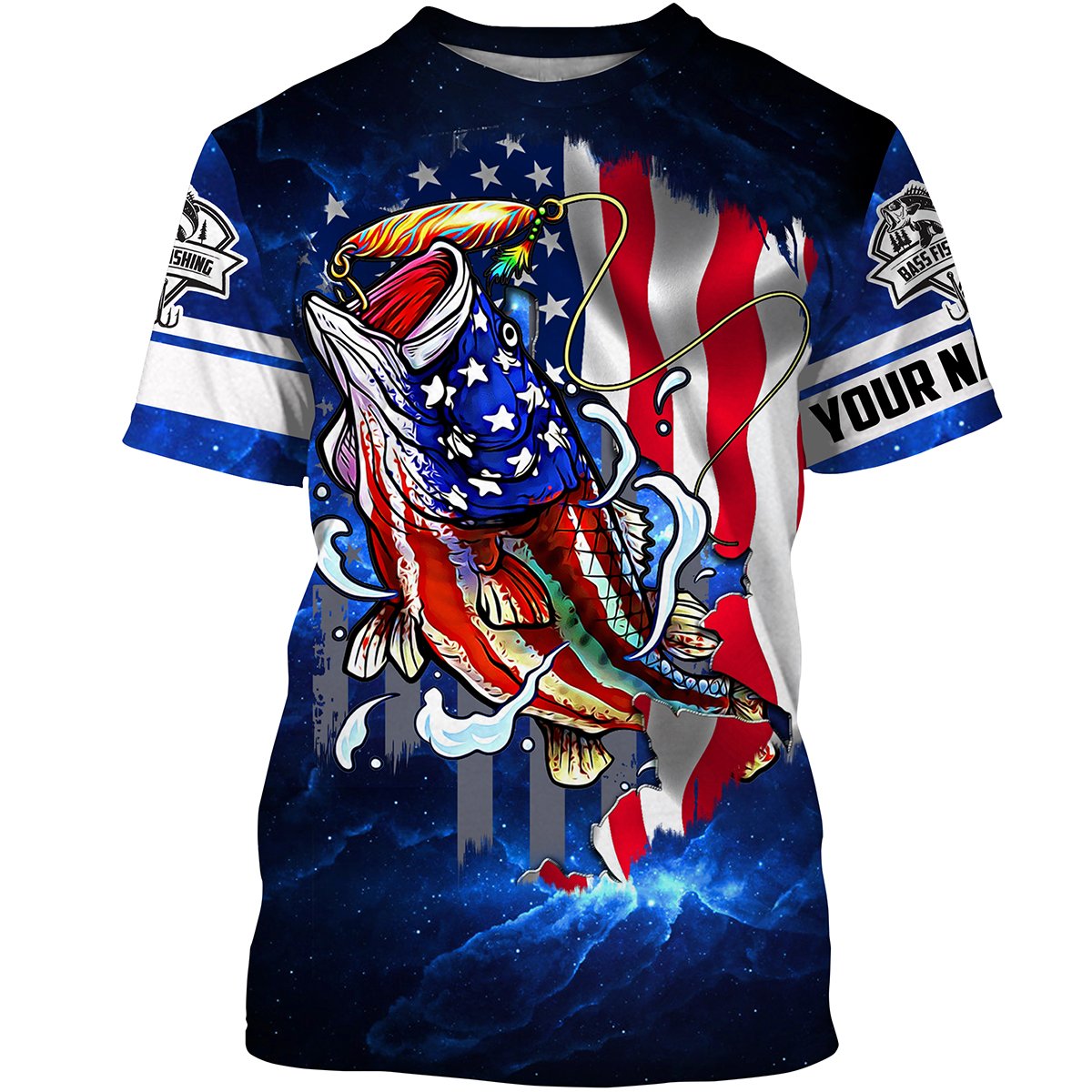 BlueJose Personalized Bass Fishing 3D American Flag Patriotic Shirts