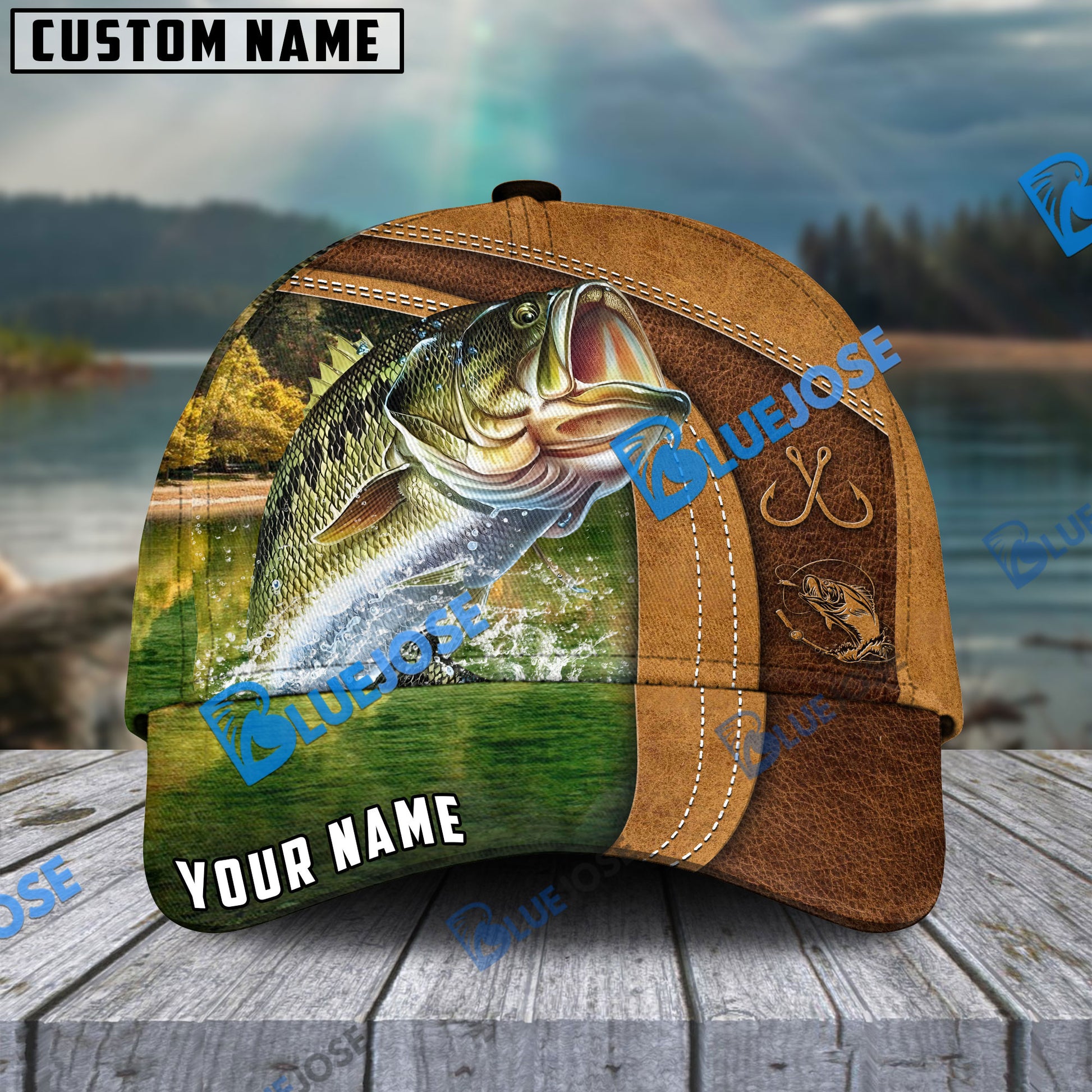 BlueJose Personalized Bass Fishing Leather Pattern Classic Cap