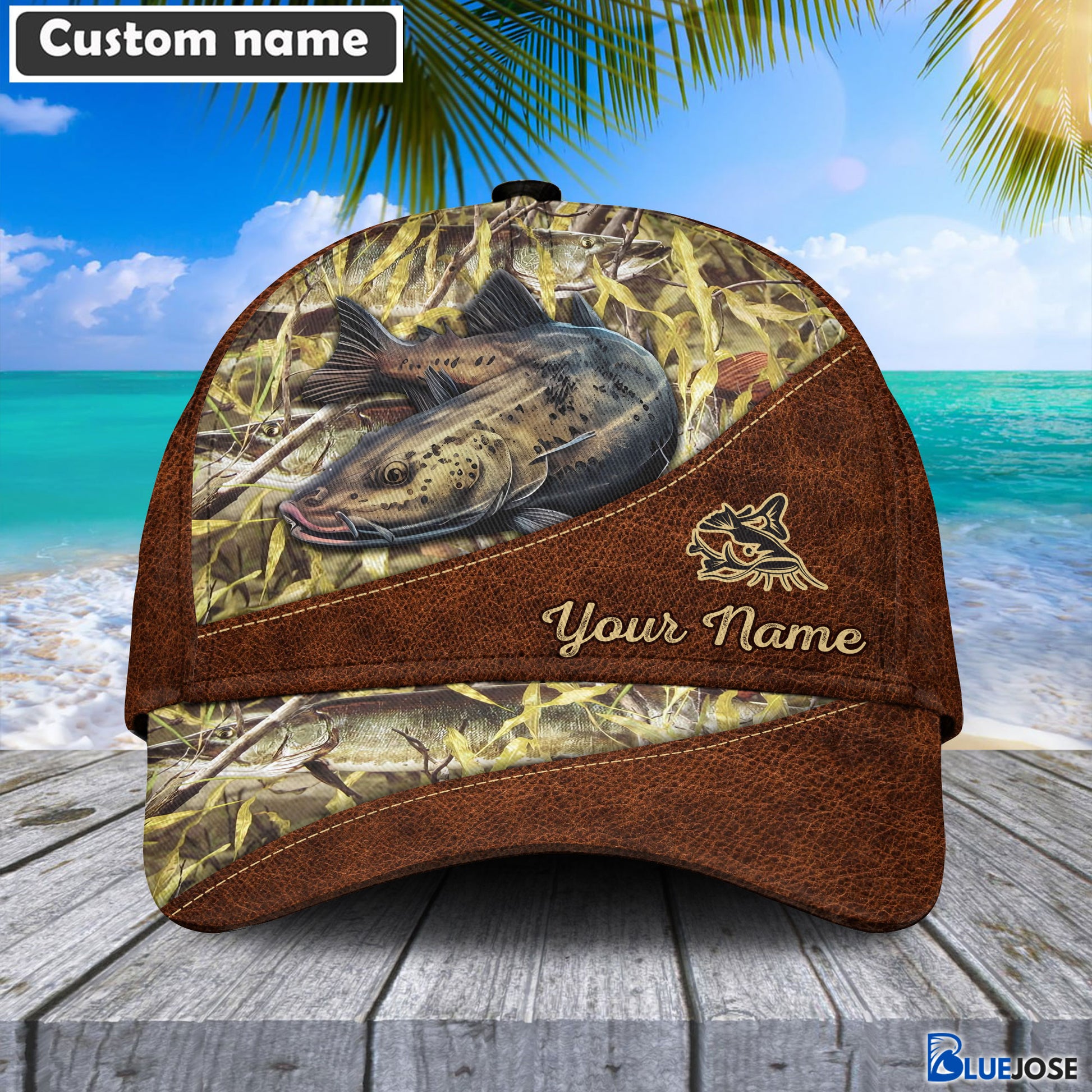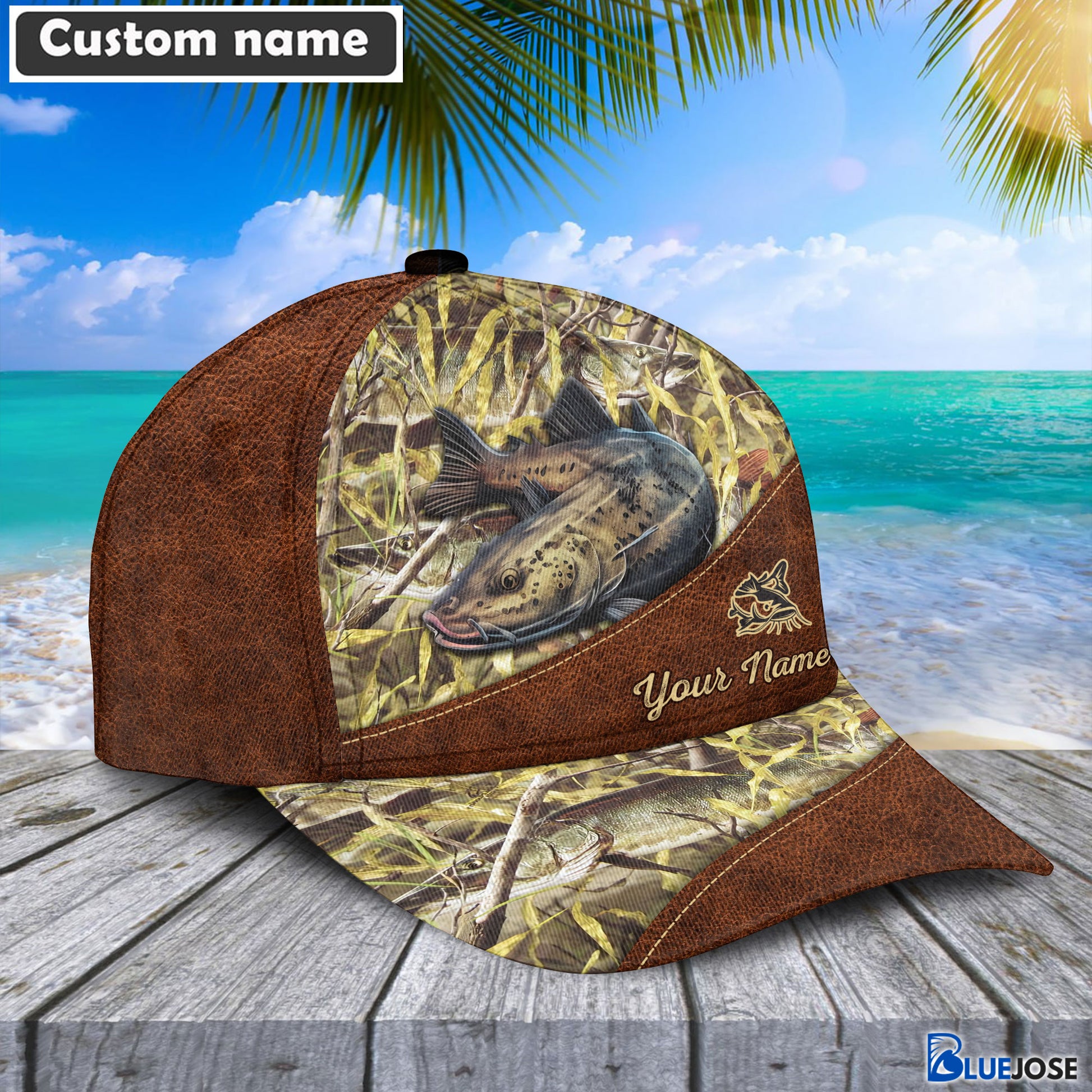 BlueJose Personalized Catfish Fishing Leather Pattern Cap