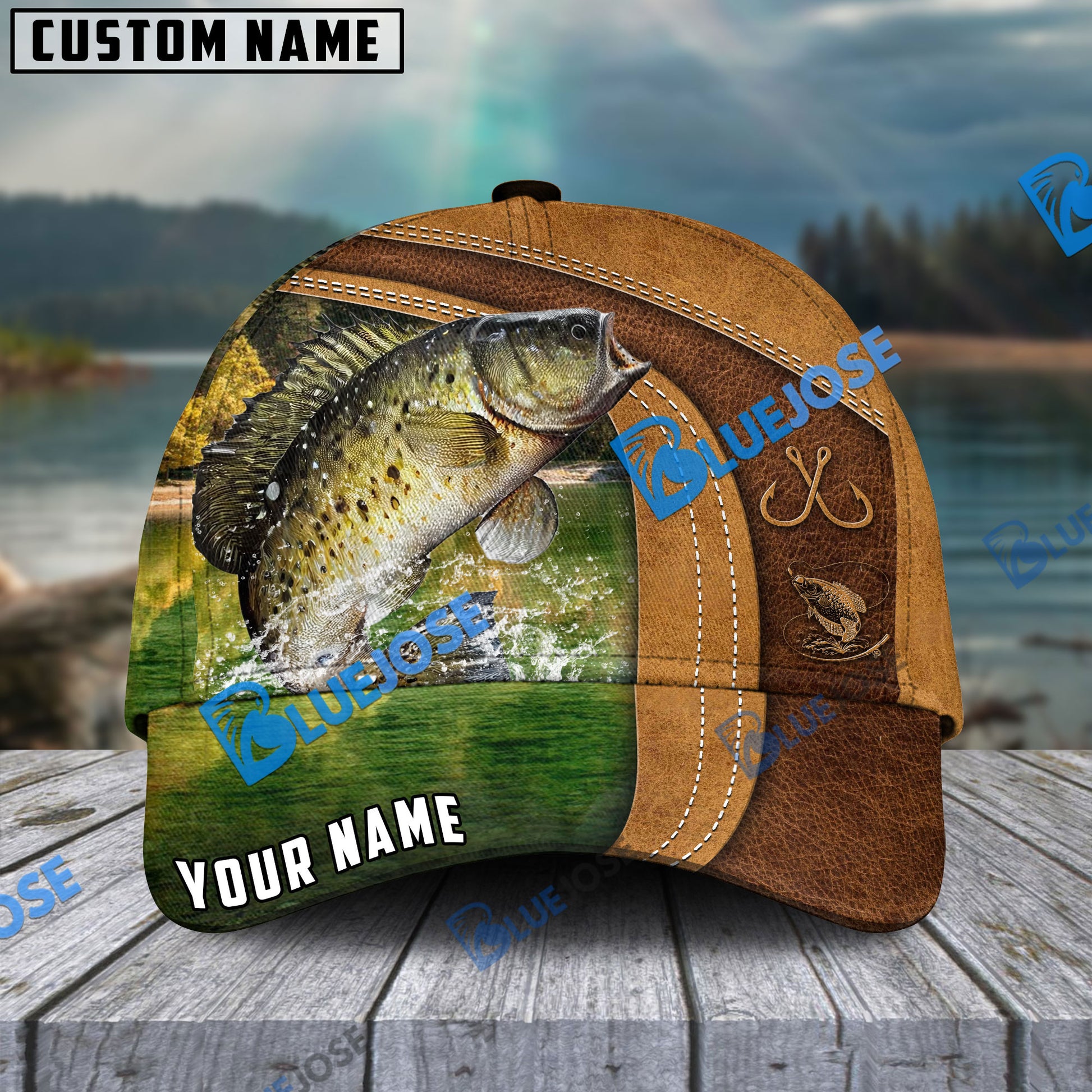BlueJose Personalized Crappie Fishing Leather Pattern Classic Cap
