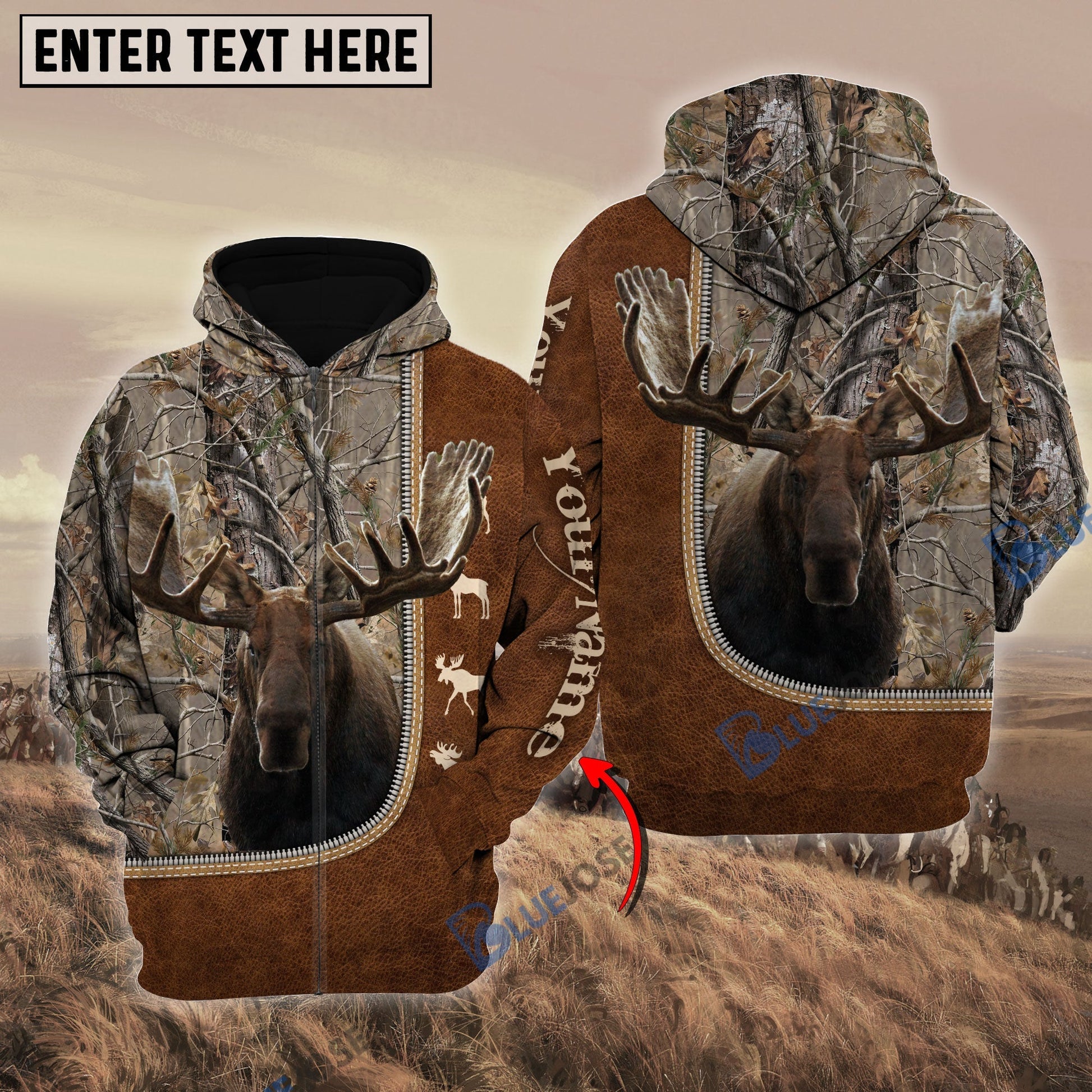 BlueJose Personalized Name Moose Happiness Hunting Brown Pattern 3D Hoodie