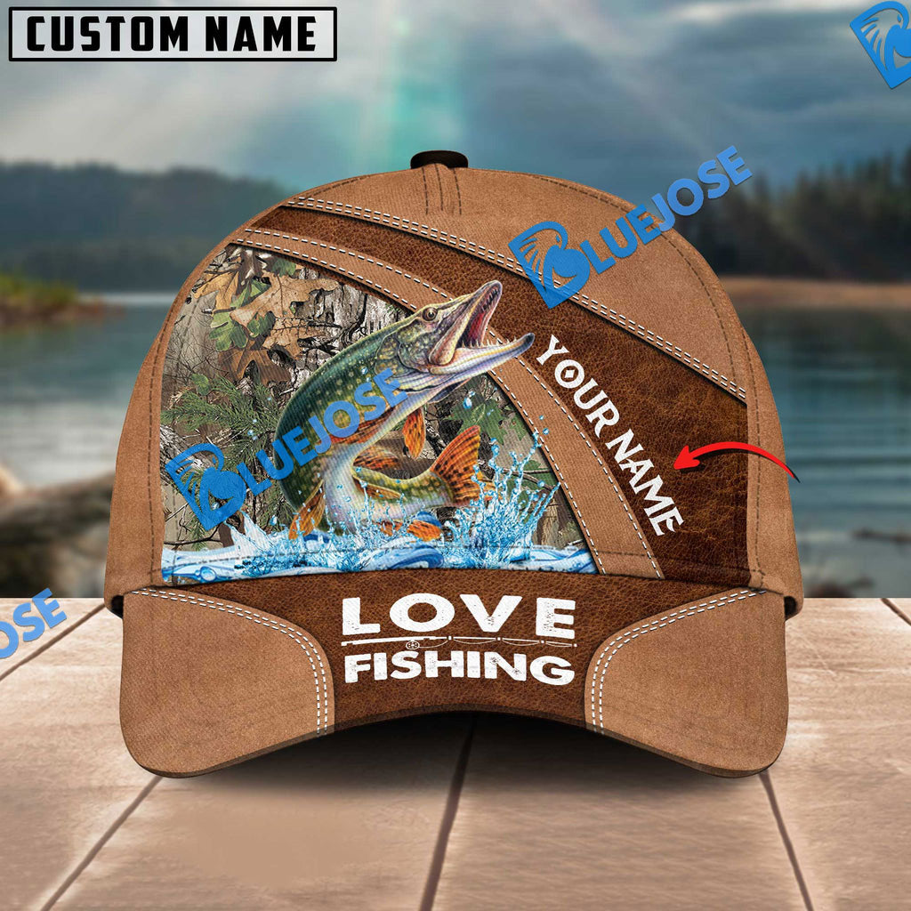 BlueJose Personalized Pike Fishing Leather Pattern Classic 3D Cap