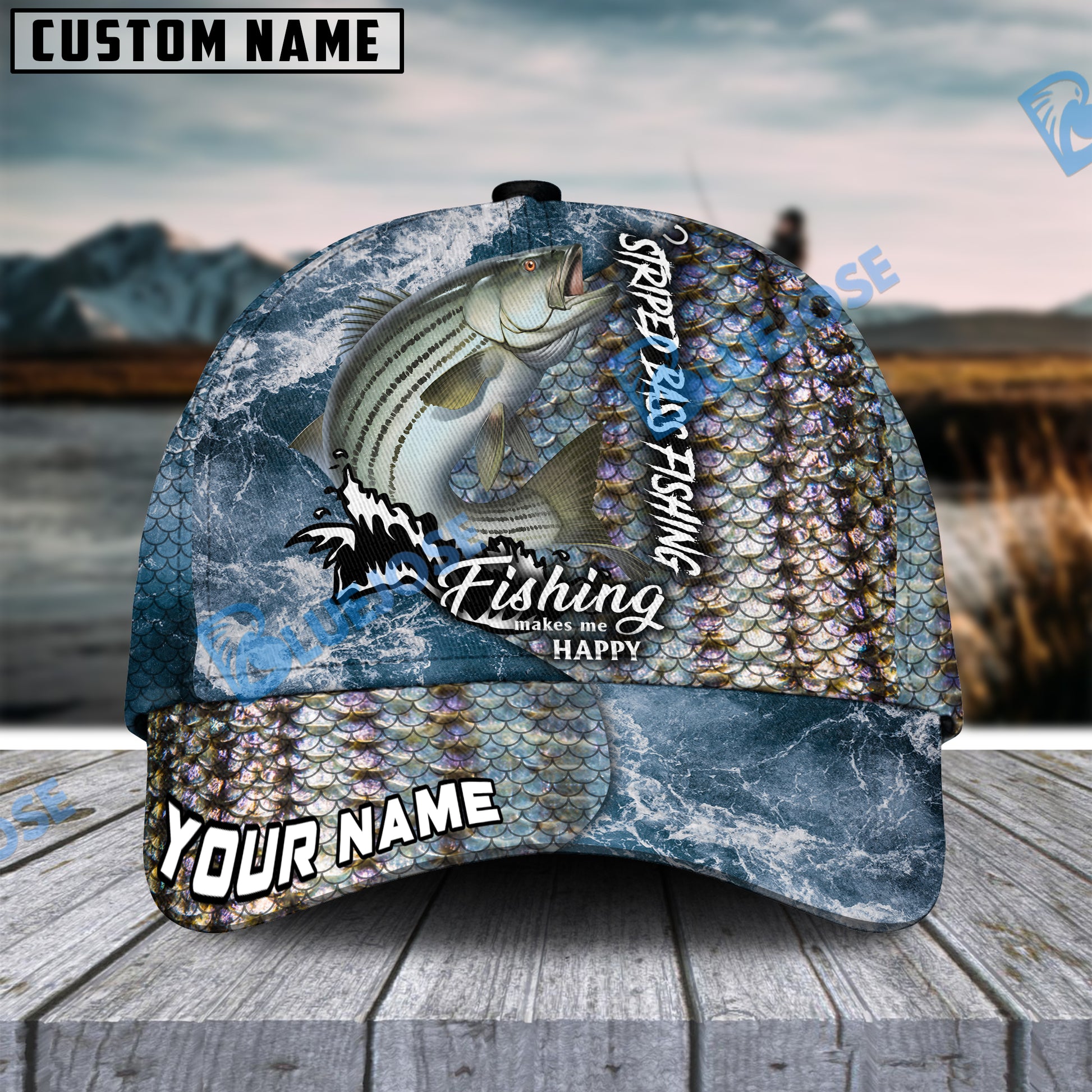 BlueJose Personalized Striped Bass Fishing Skin Seawave Classic Cap