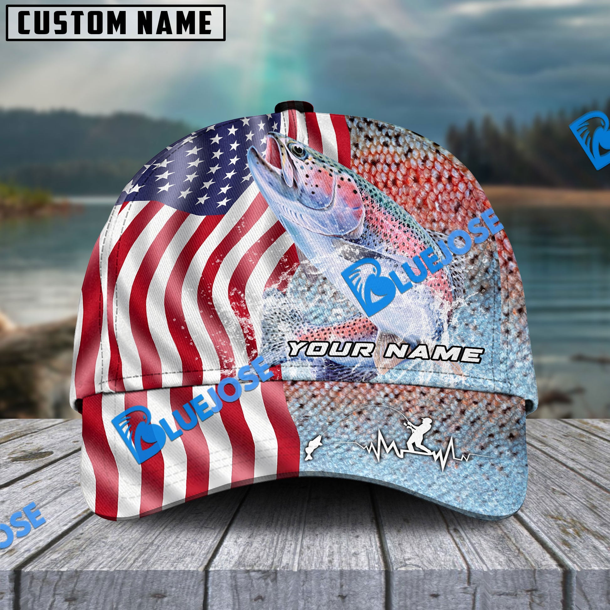 BlueJose Personalized Trout Skin American Flag Fishing Classic Cap
