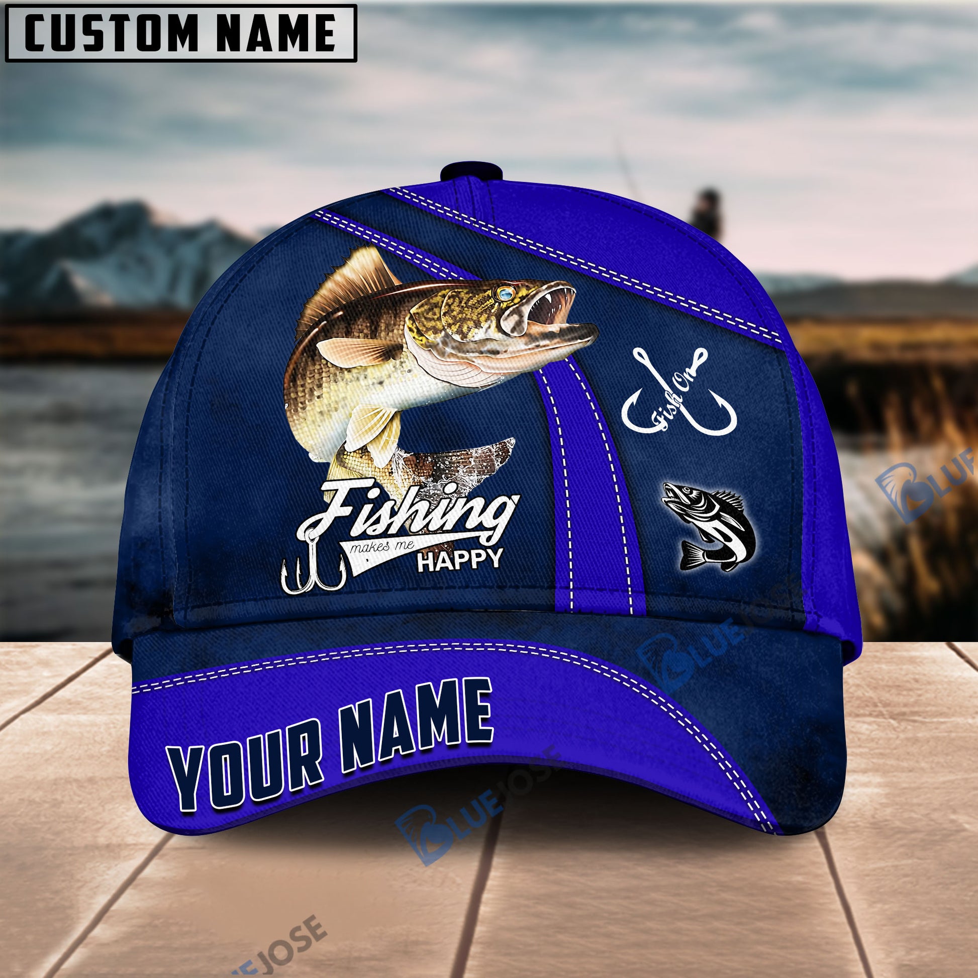 BlueJose Personalized Walleye Fishing Blue Cap