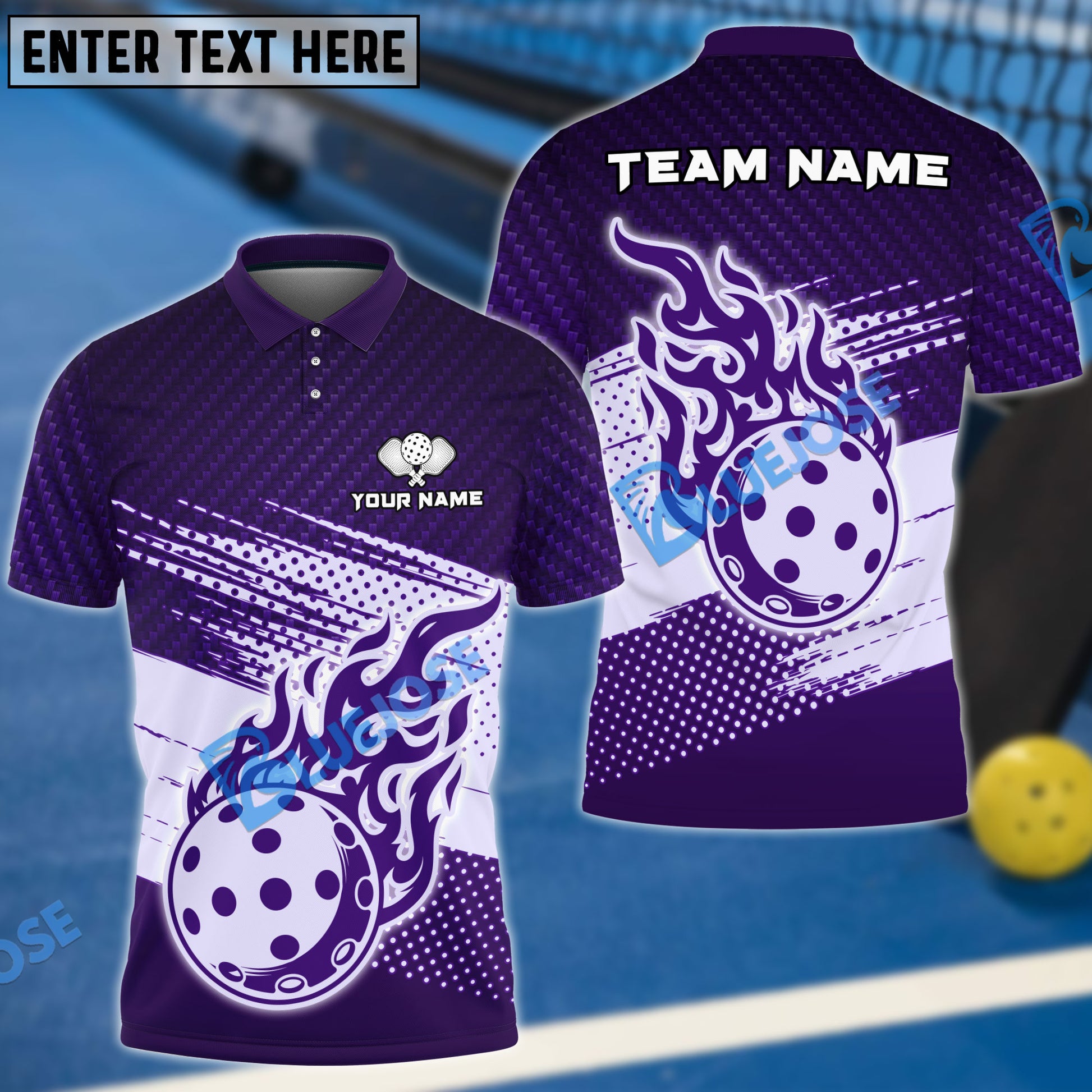 BlueJose Pickleball Fire Pattern Customized Name 3D Shirt (4 Colors)