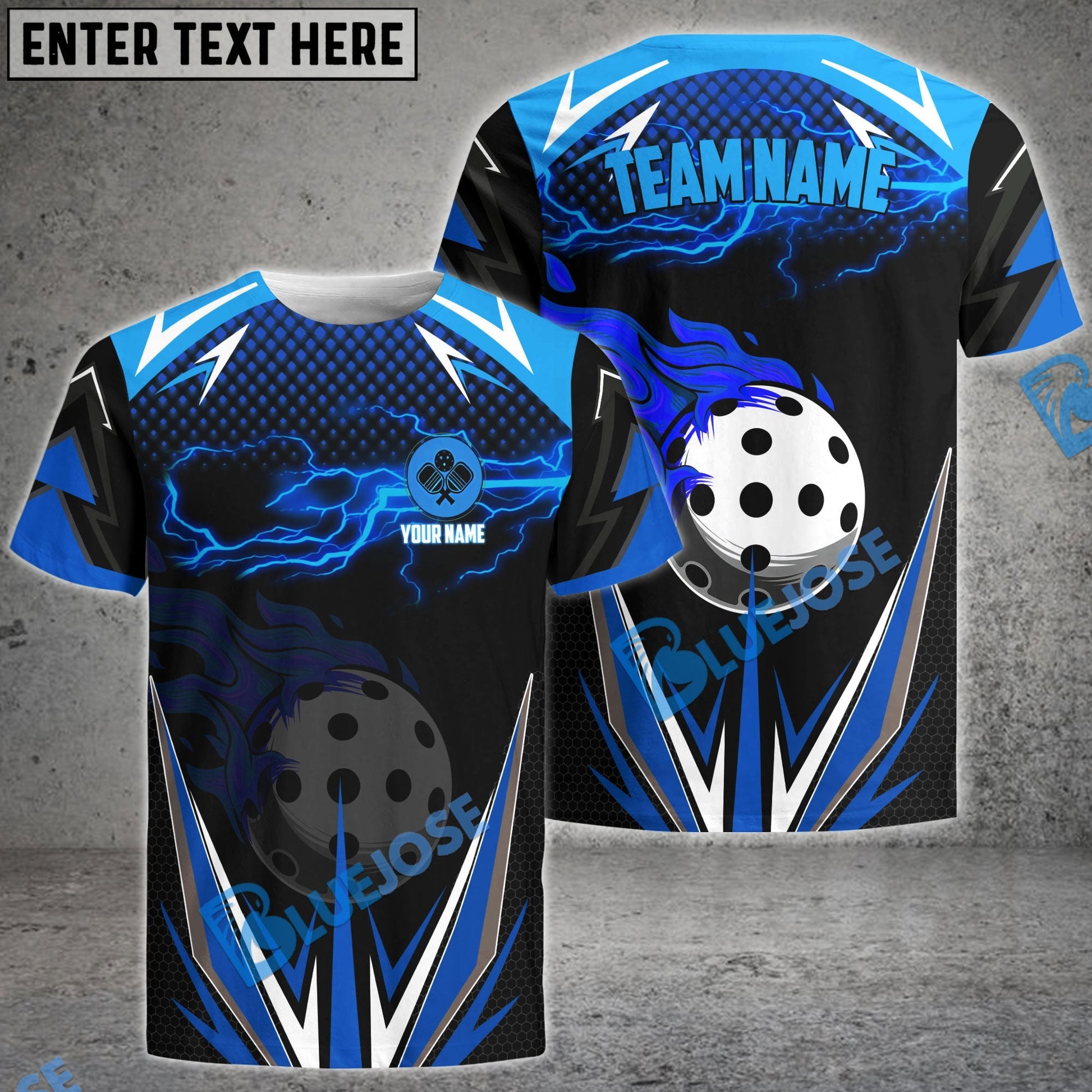 BlueJose Pickleball Blue Fire Lightning Personalized Name, Team Name Unisex Shirt