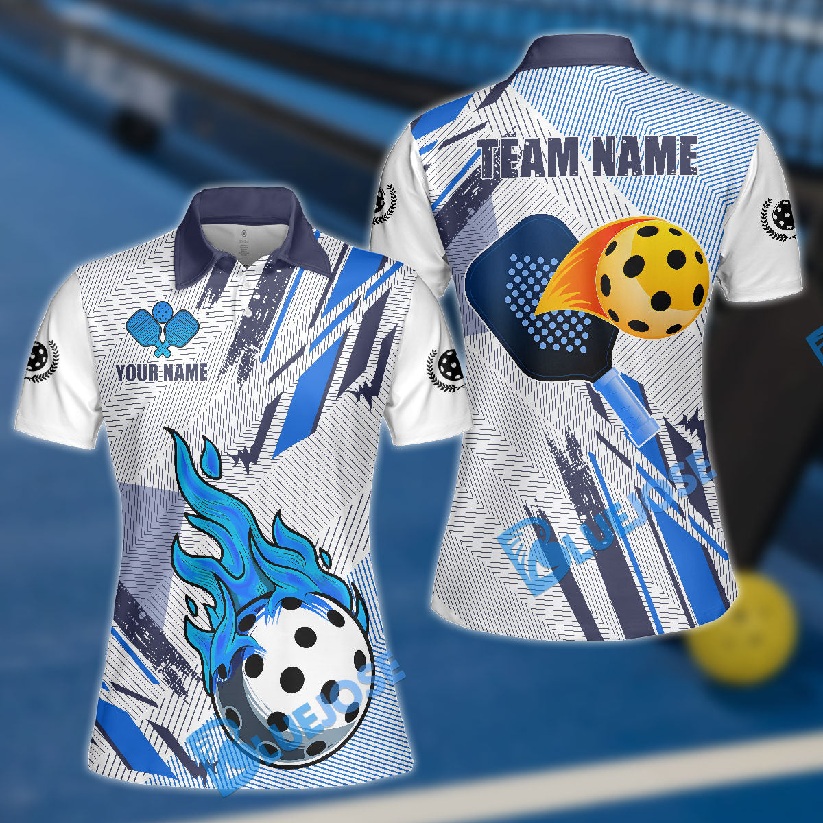 BlueJose Pickleball Blue Fire Personalized Name, Team Name Unisex Shirt