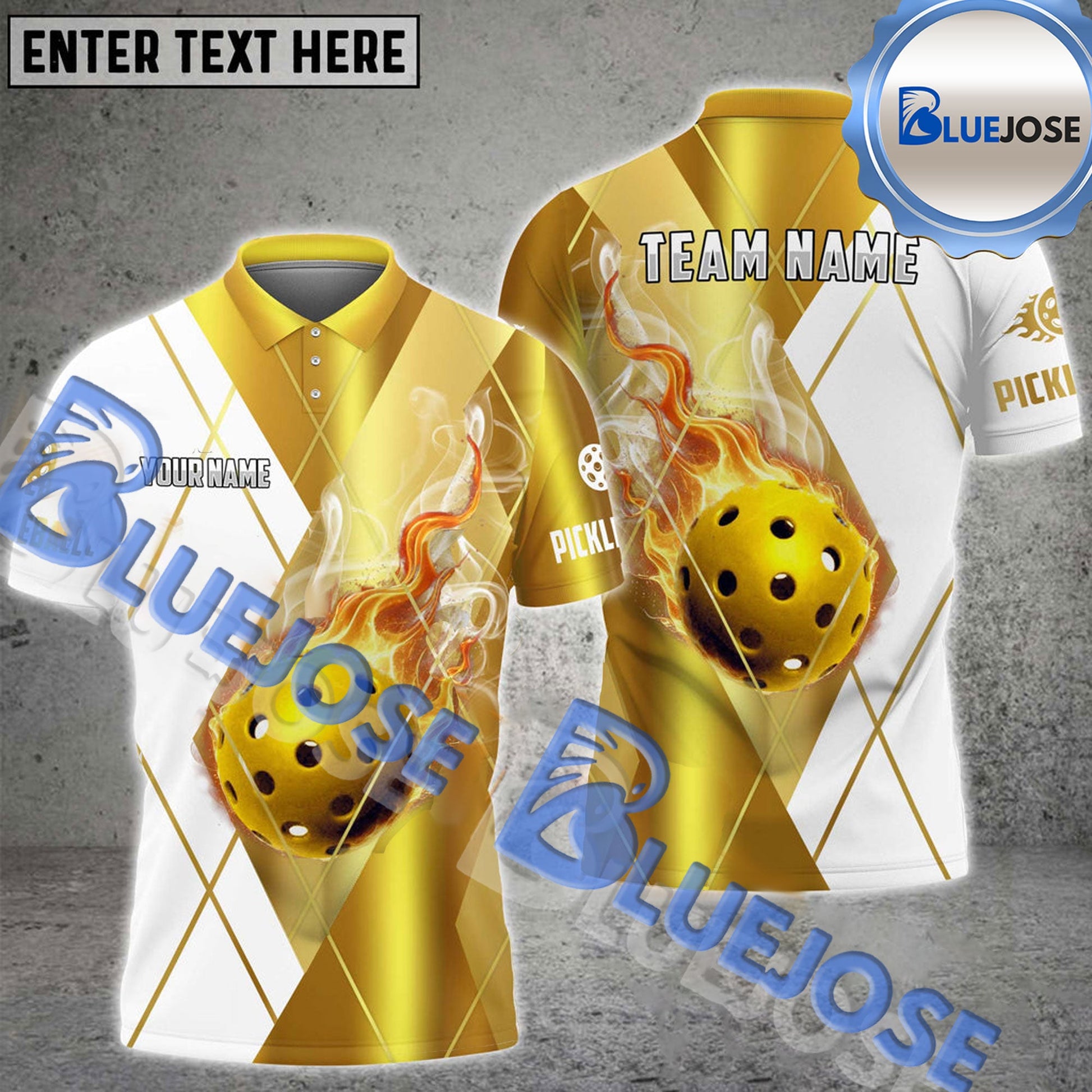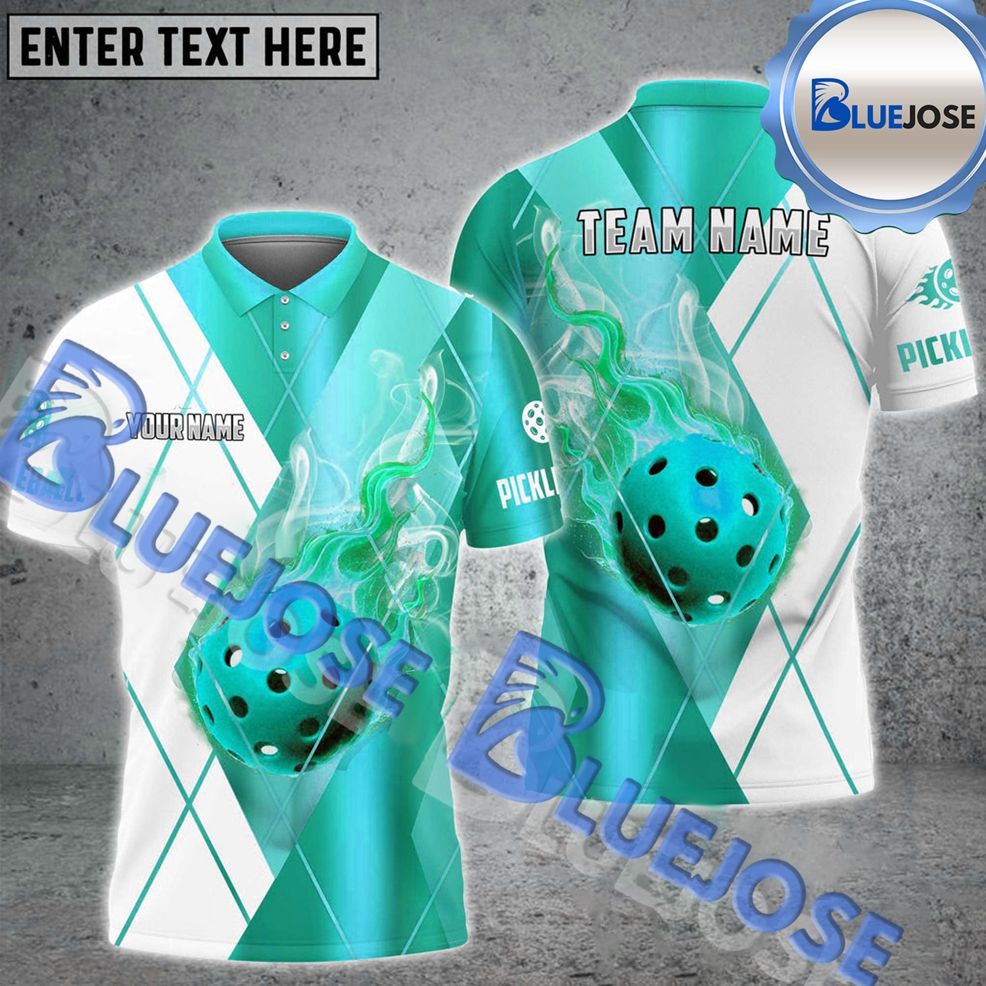 BlueJose Pickleball Fire Smoke Personalized Name, Team Name Unisex Shirt (4 Colors)