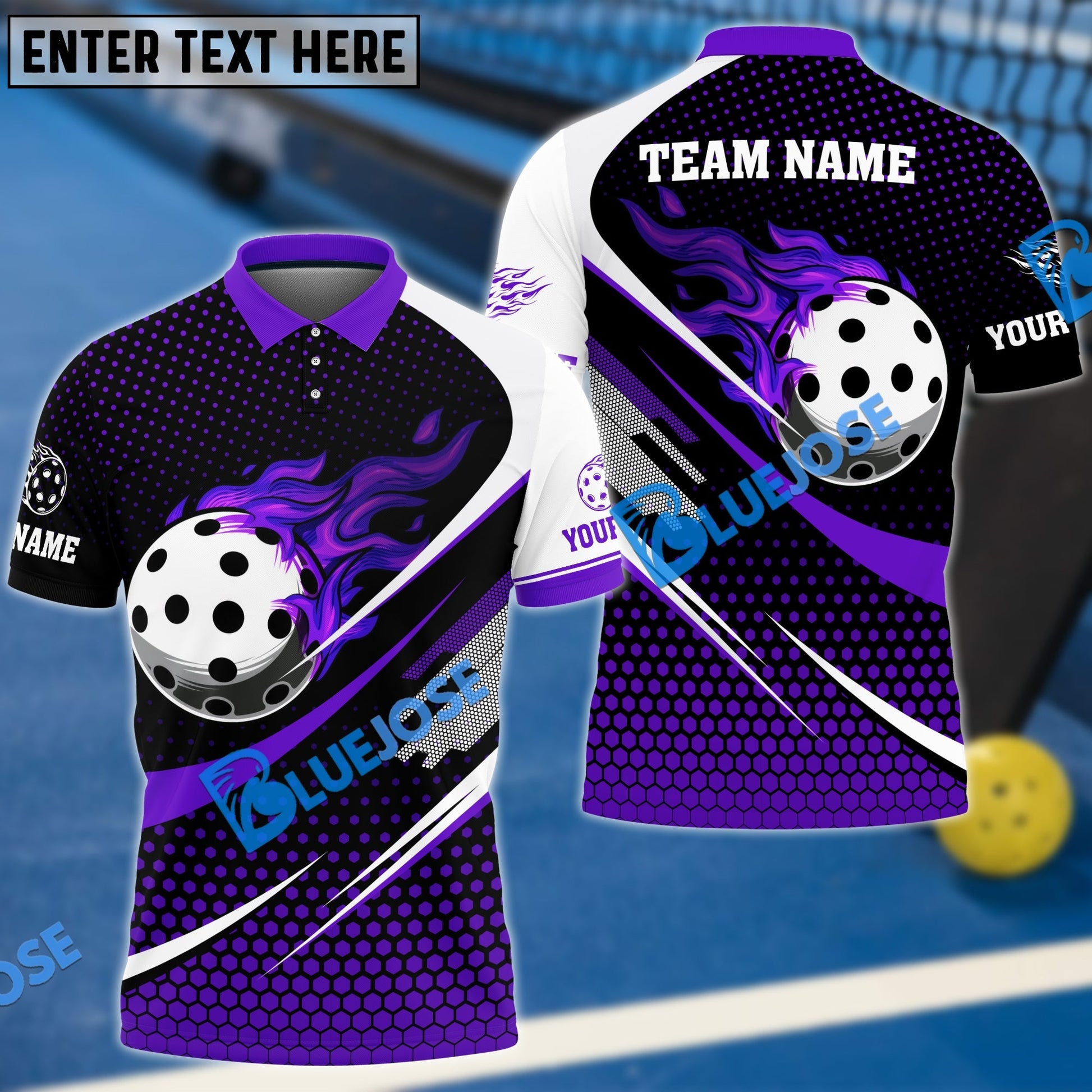 BlueJose Pickleball Flame Point Pattern Personalized Name, Team Name Unisex Shirt (4 Colors)
