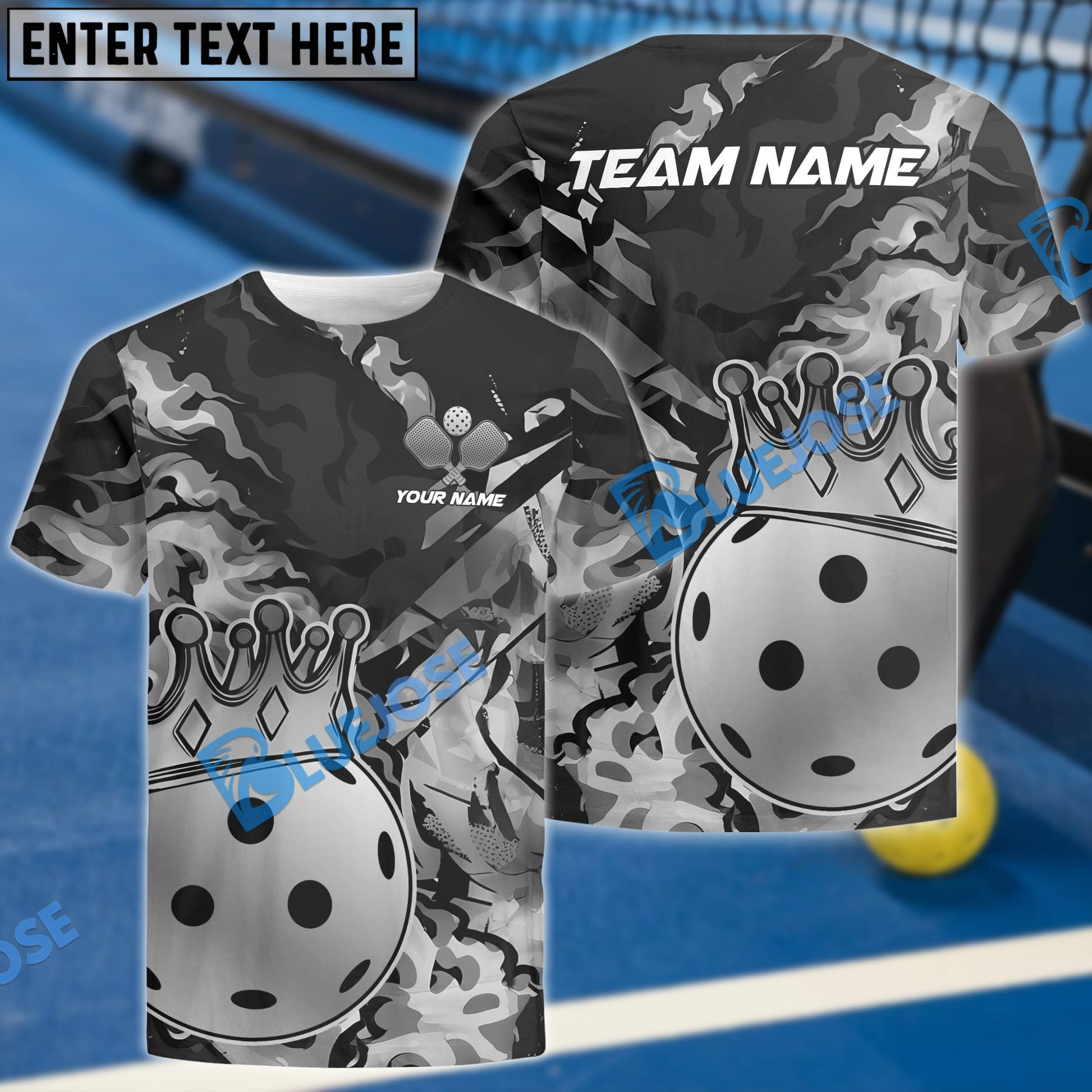 BlueJose Pickleball King Crown Golden Pattern Personalized Name, Team Name Unisex Shirt (4 Colors)