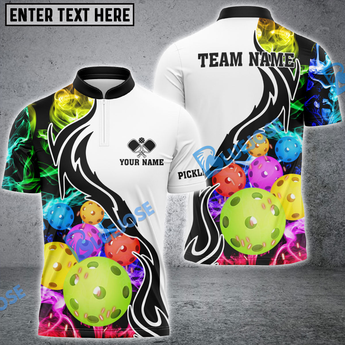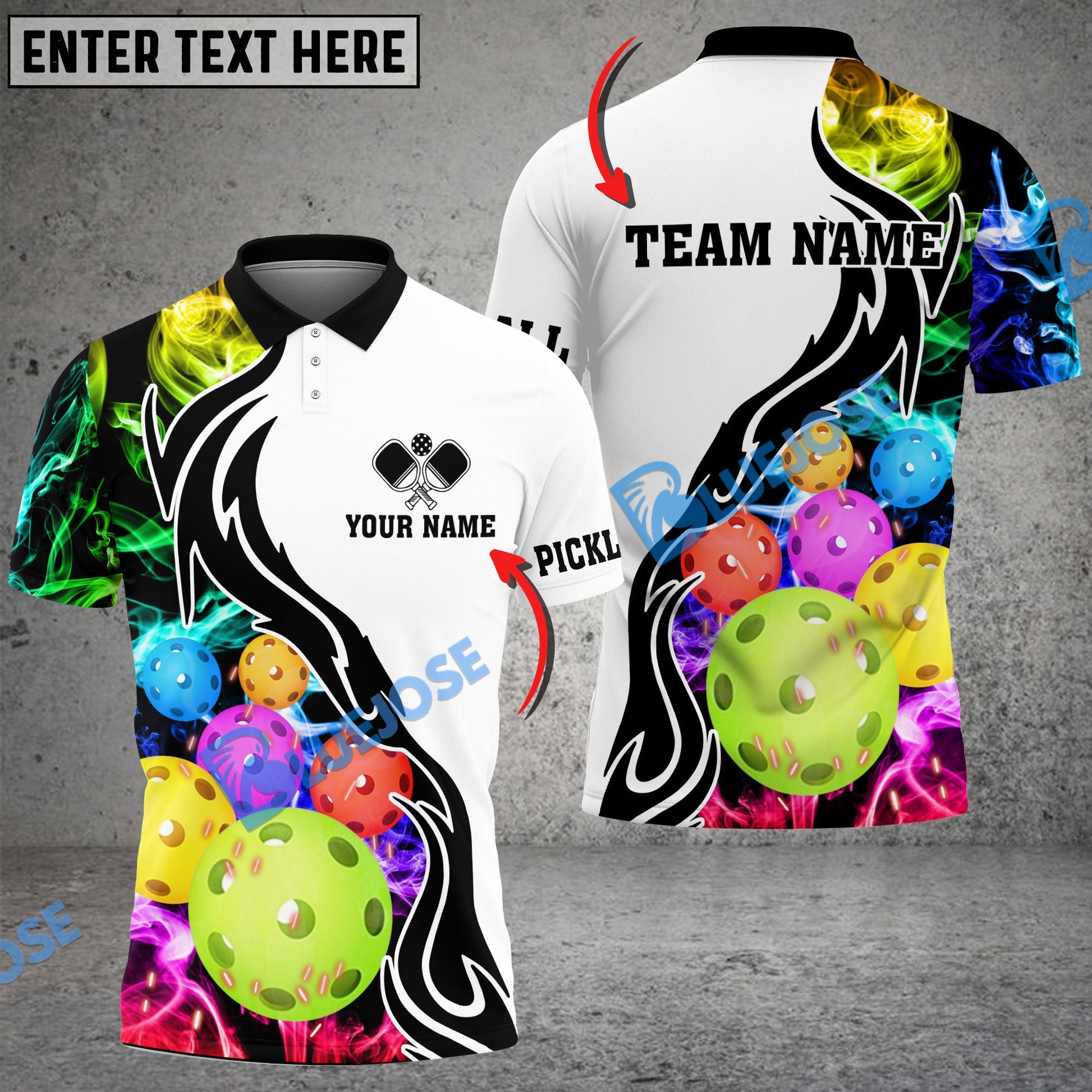 BlueJose Pickleball Rainbow Smoke 2 Personalized Name, Team Name Unisex Shirt