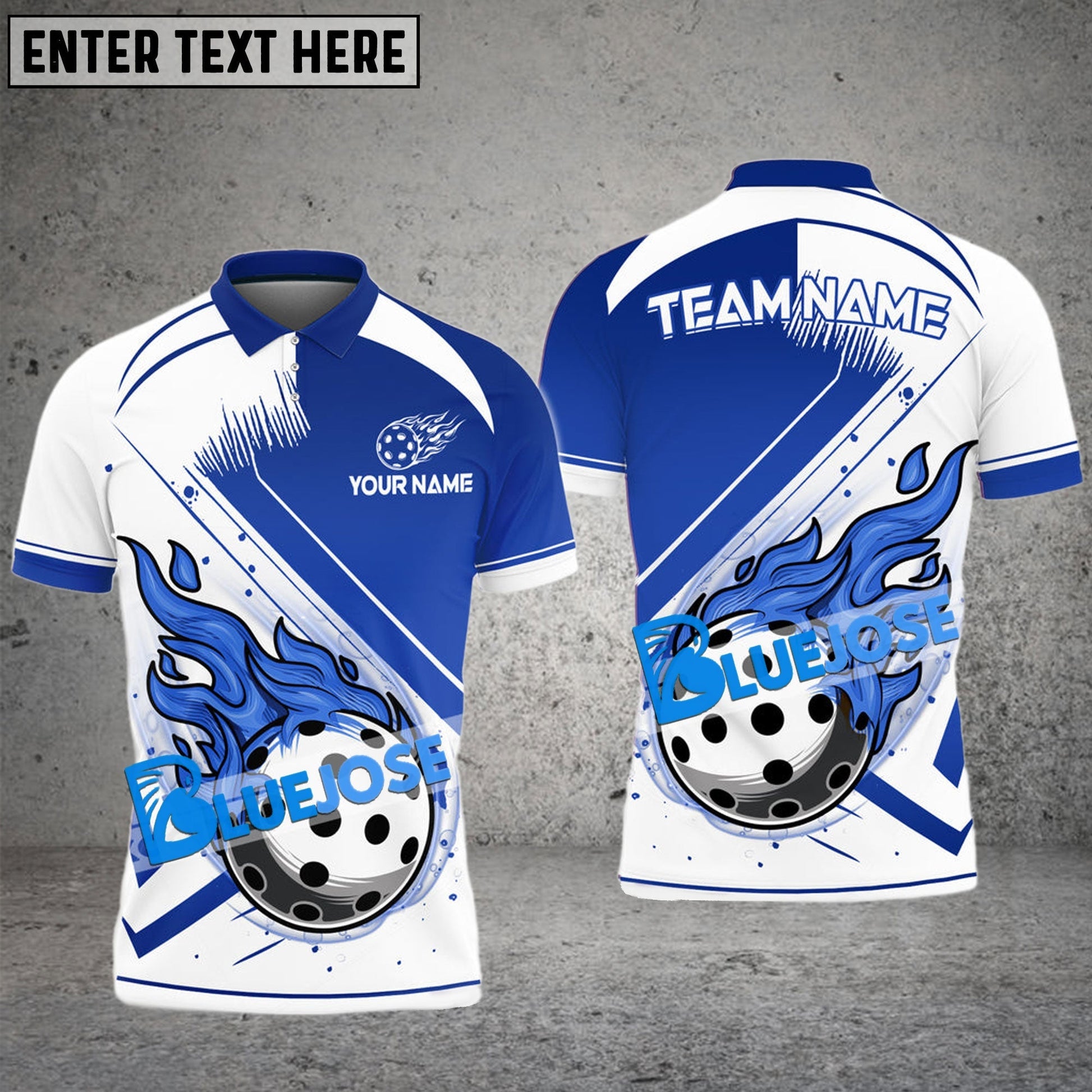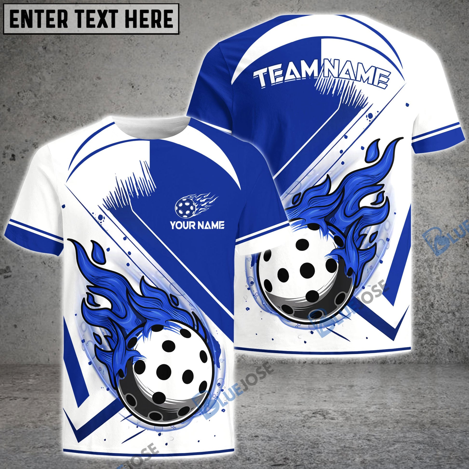 BlueJose Pickleball Slash Flame Personalized Name, Team Name Unisex Shirt (4 Colors)