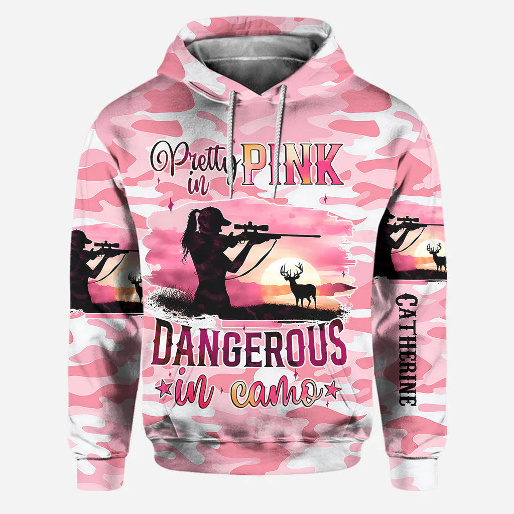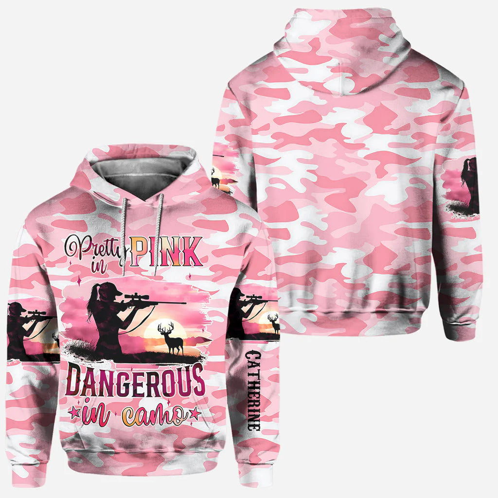 BlueJose Pink Camo, Personalized Hunting All Over Shirt, Personalized 3D Hoodie For Hunting Lover