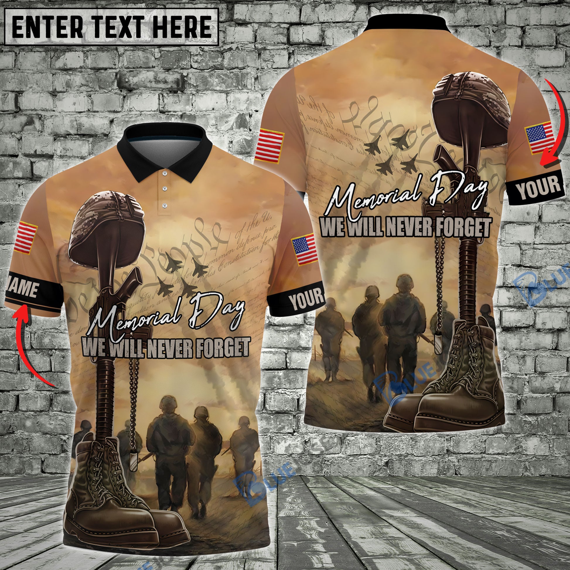 BlueJose Premium Memorial Day We Will Never Forget Polo Shirt