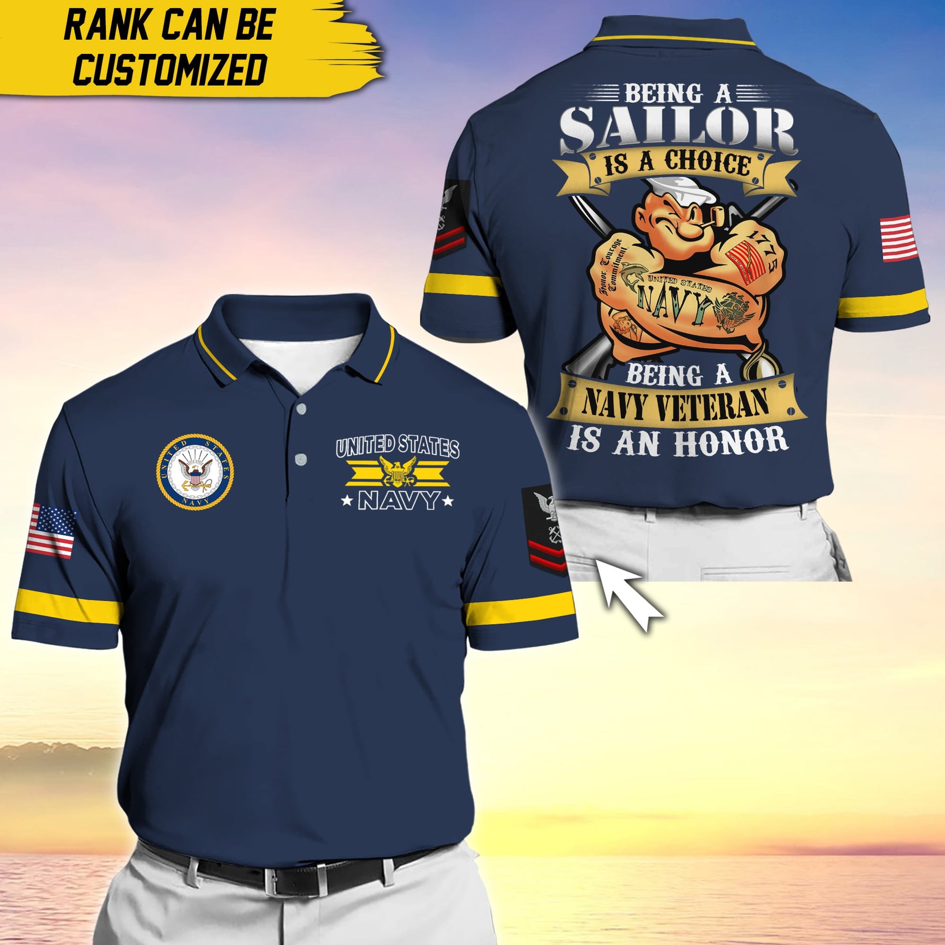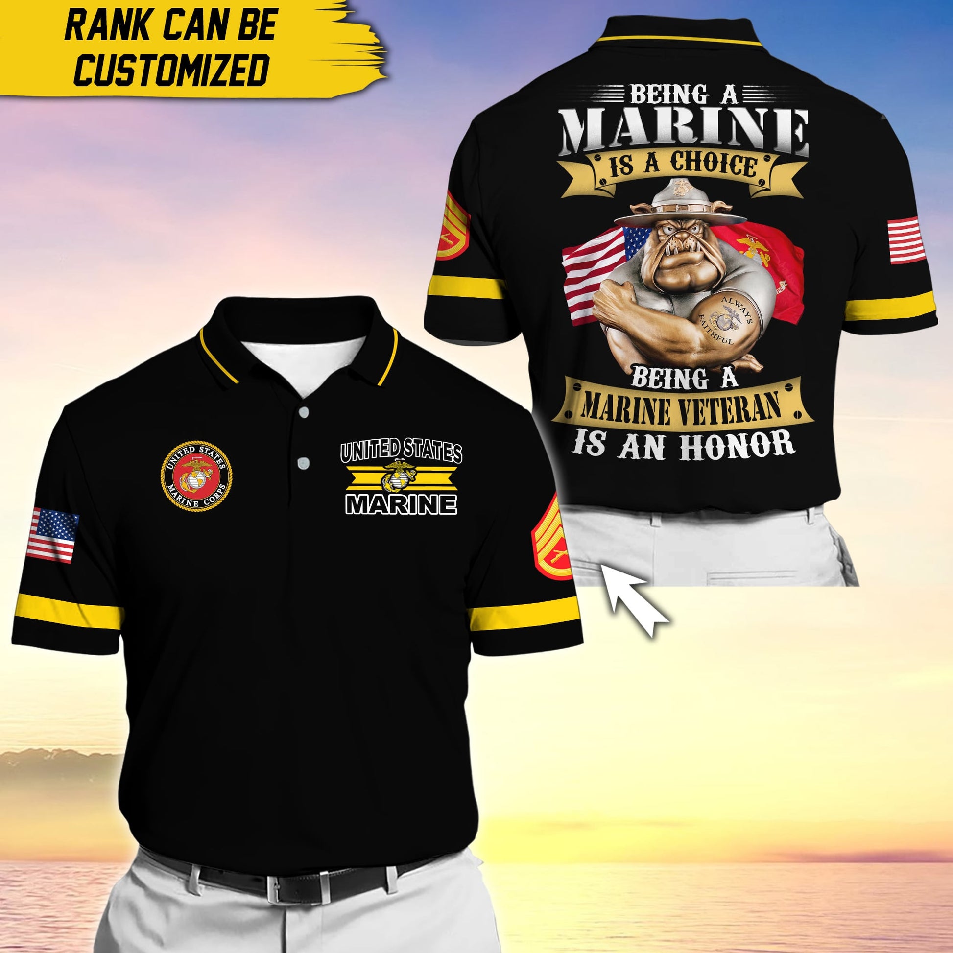 BlueJose Premium Personalise U.S Multiple Service Veteran Polo Shirt