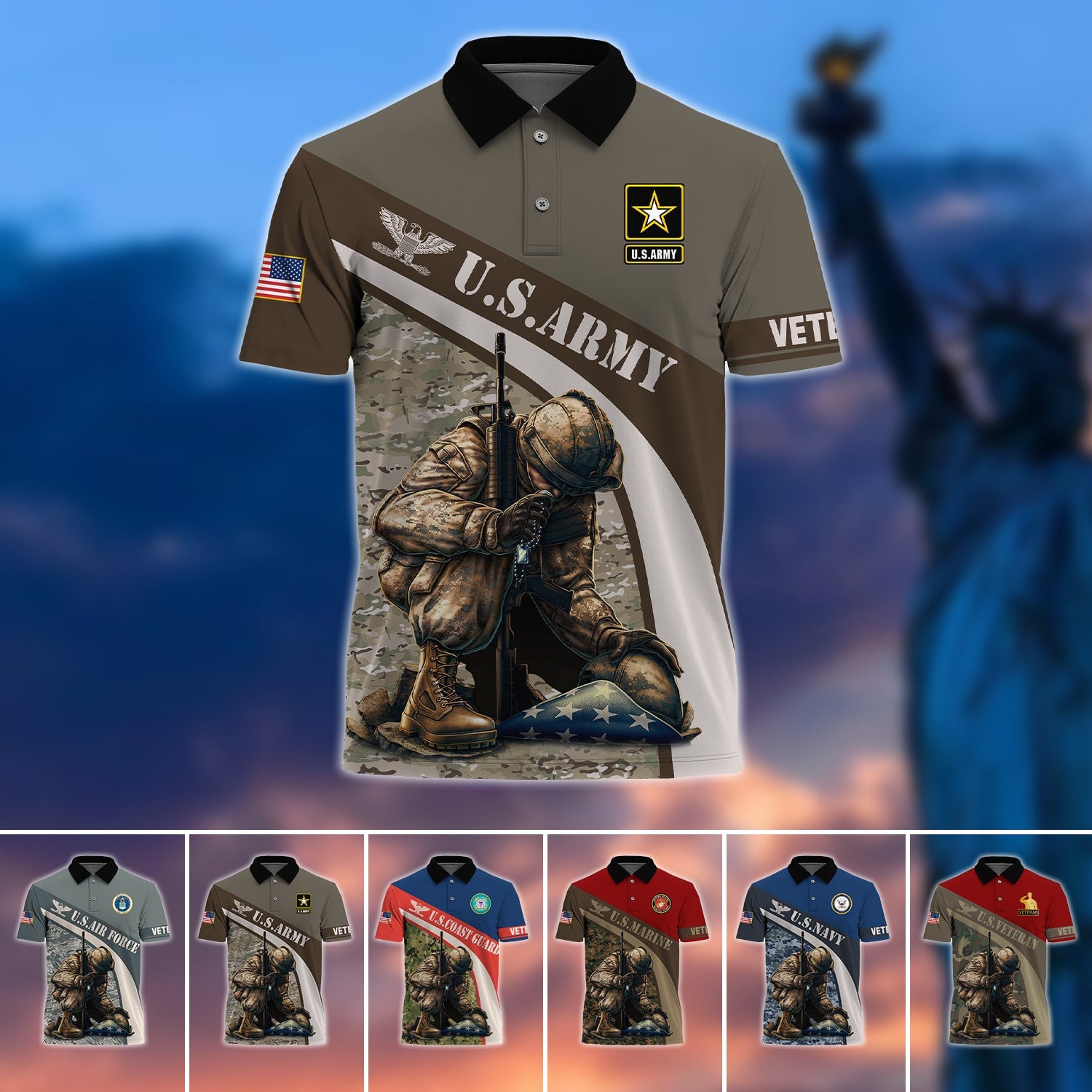 BlueJose Premium U.S Multiple Service Veteran Polo Shirt