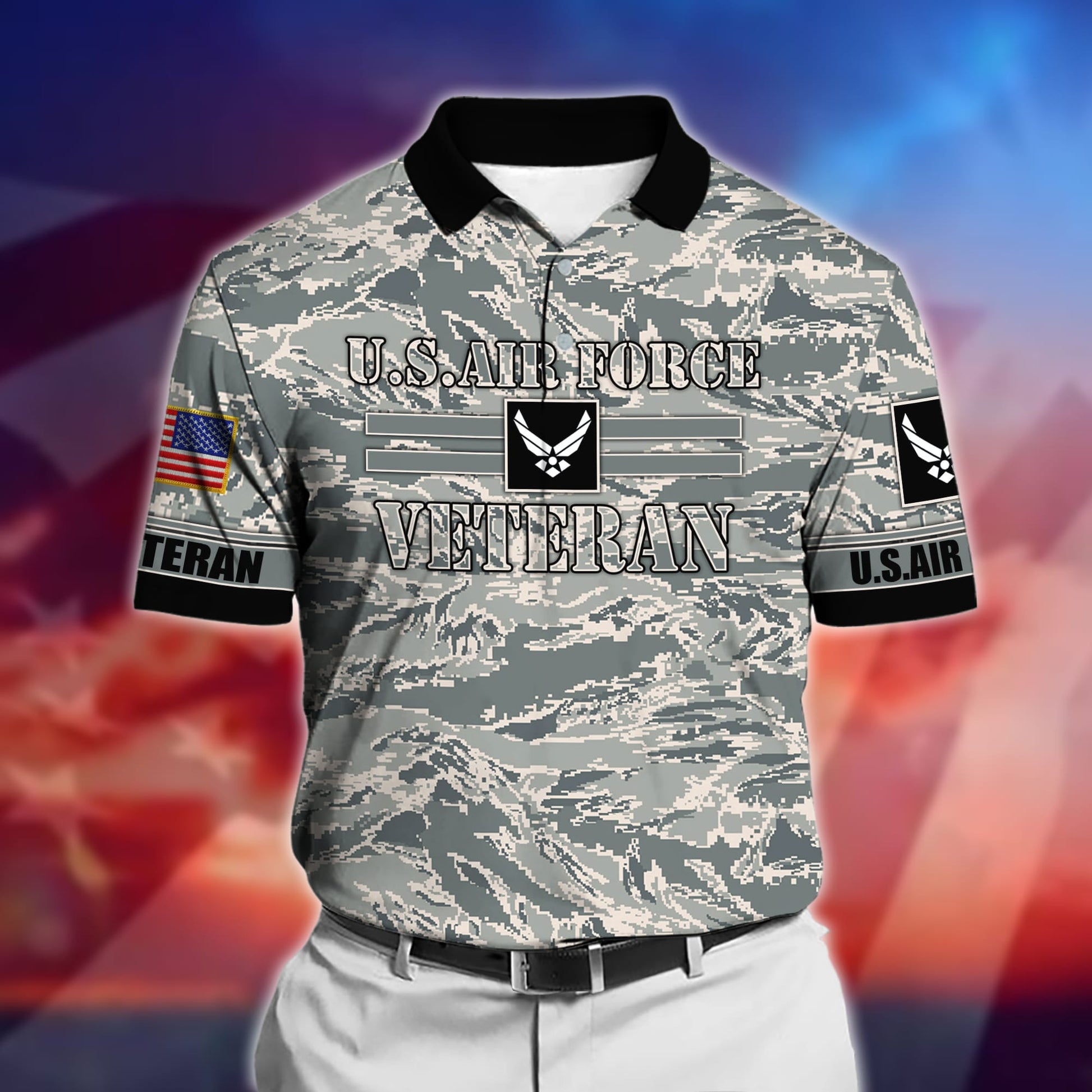 BlueJose Premium U.S Multiple Service Veteran Polo Shirt