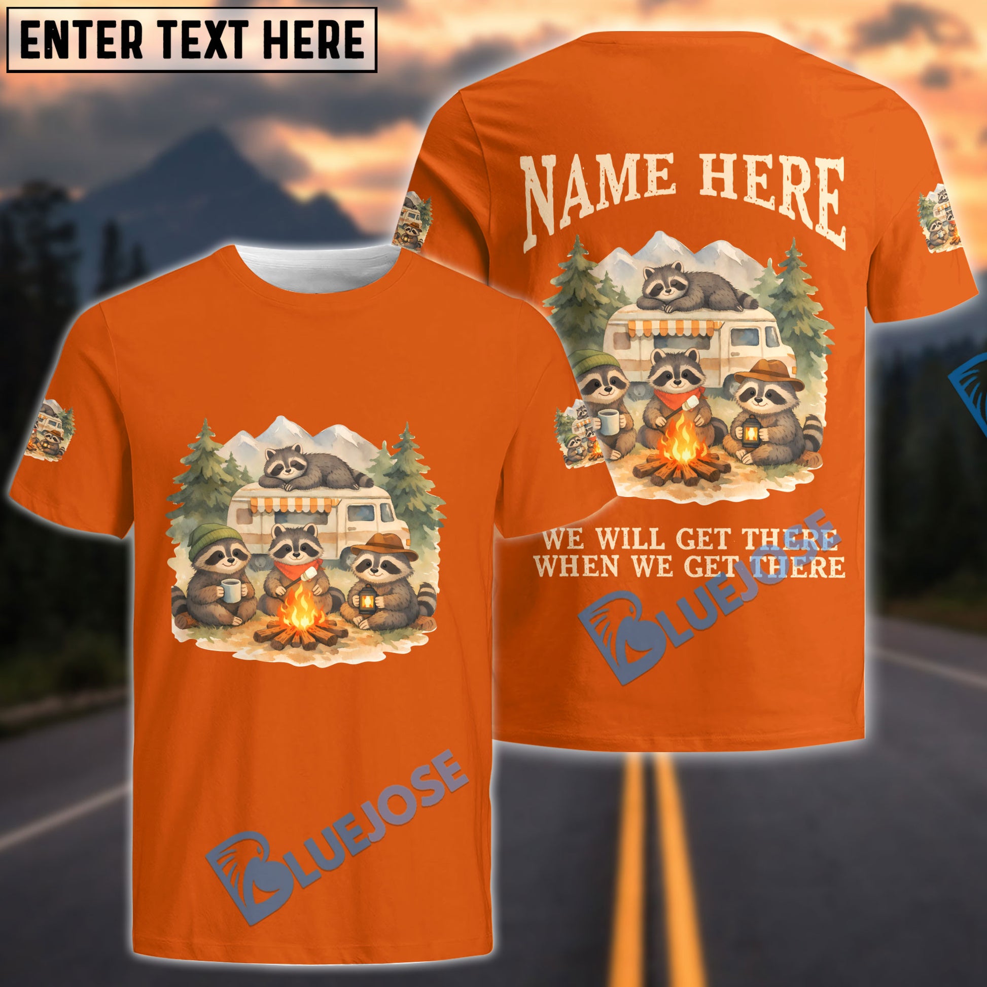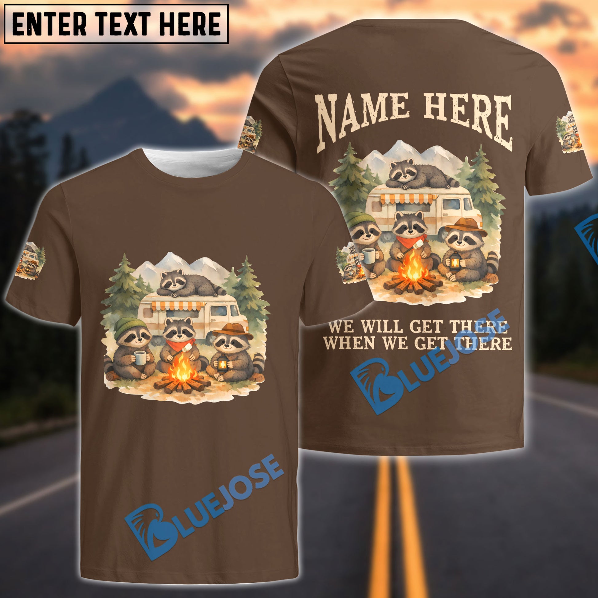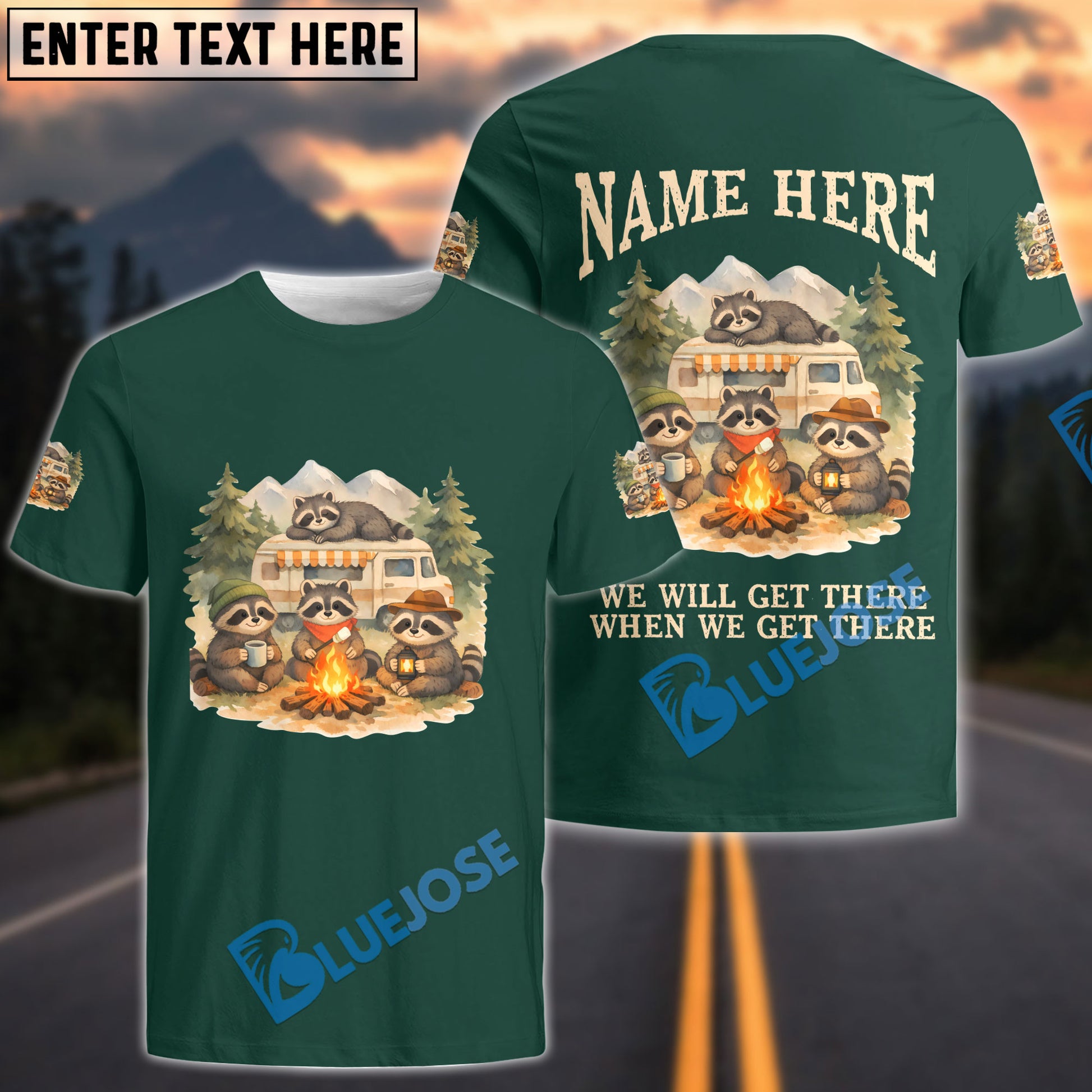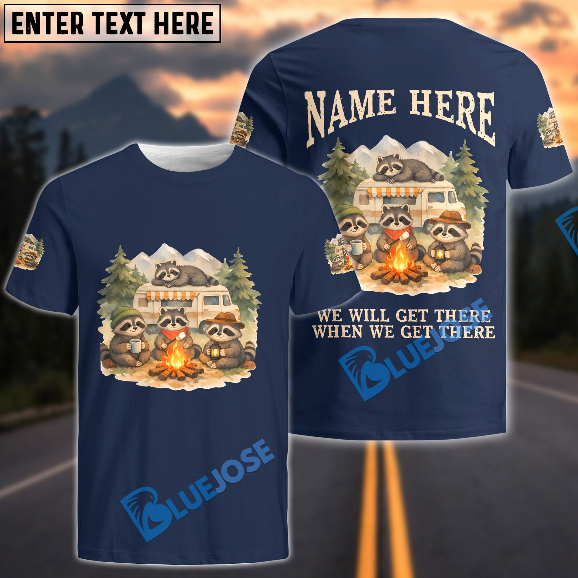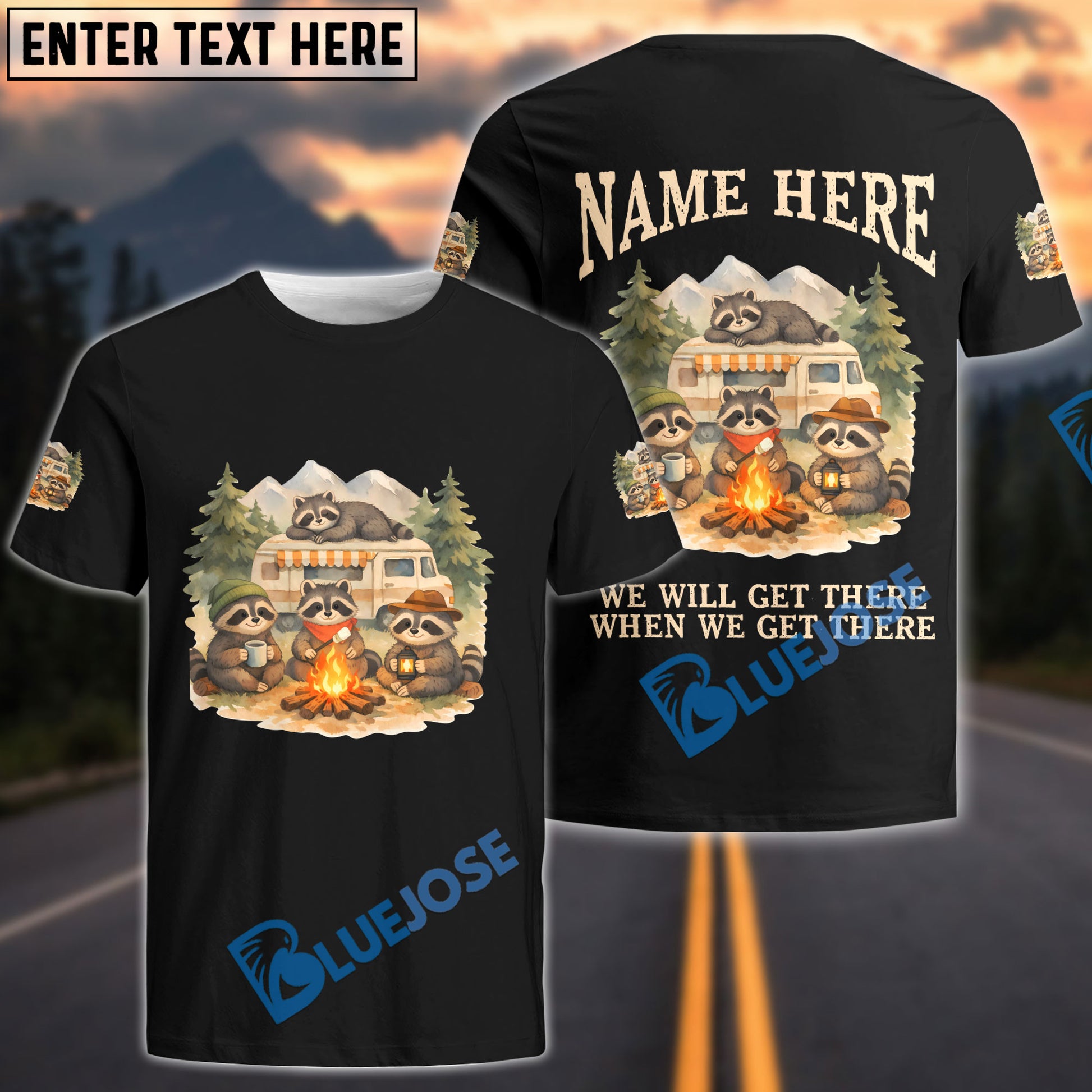 BlueJose Racoon Camping We Will Get There When We Get There Personalized Name Shirts