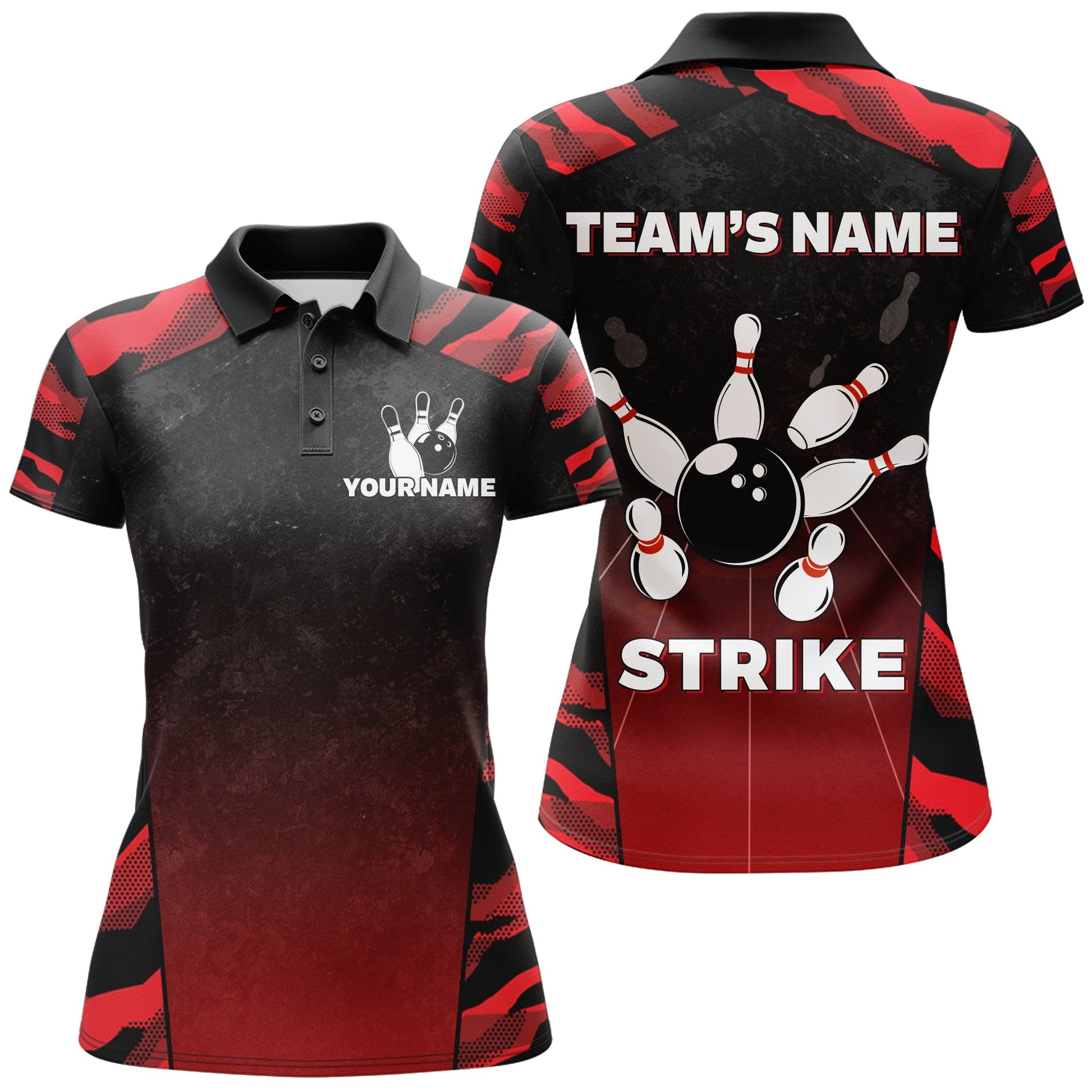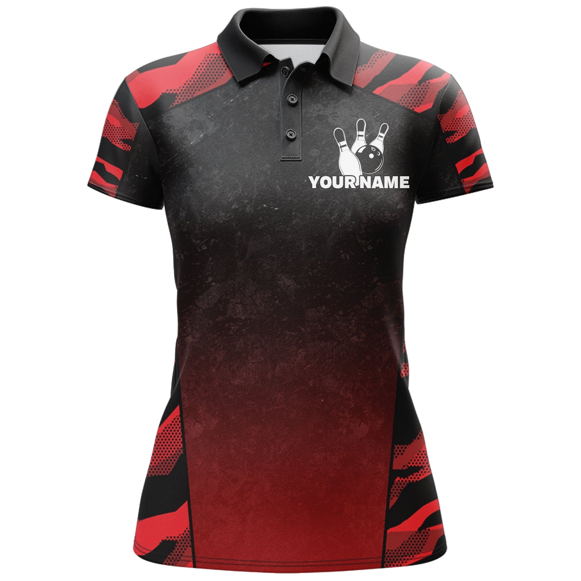 BlueJose Red Camo Strike Bowling Premium Customized Name 3D Shirt For Women