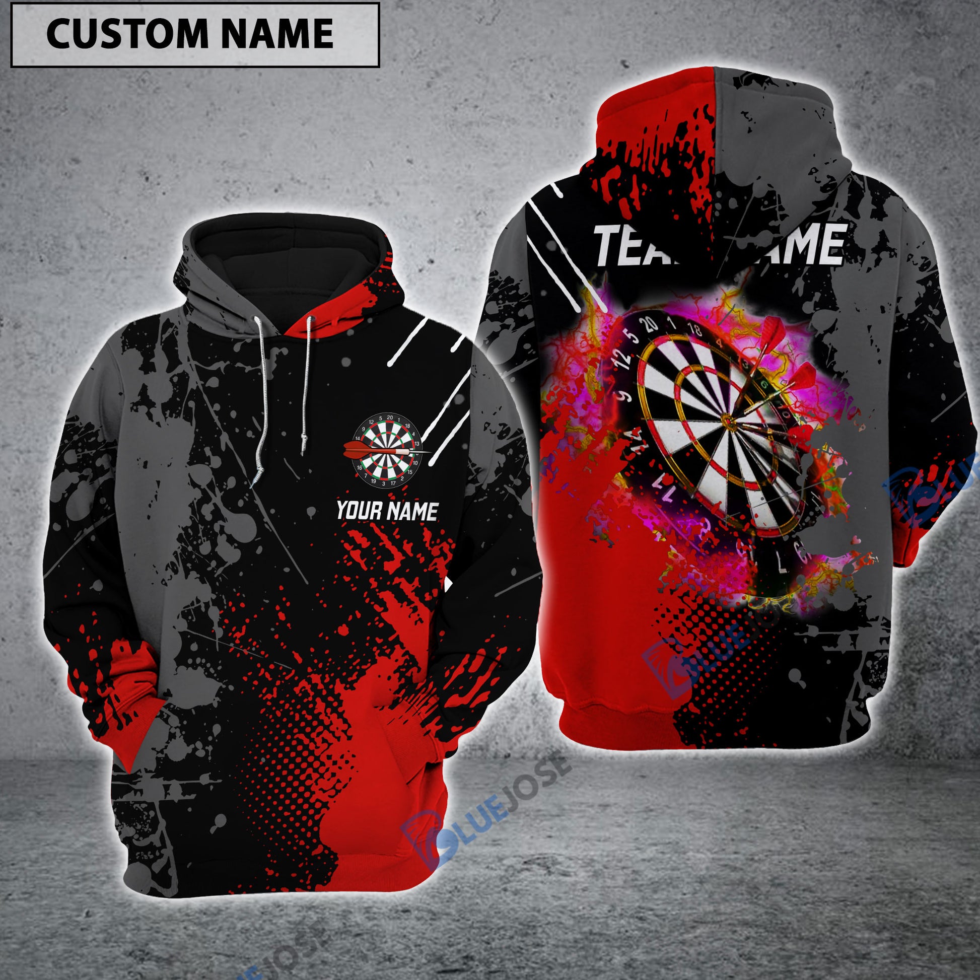 BlueJose Red Dart Board Personalized Darts Hoodie