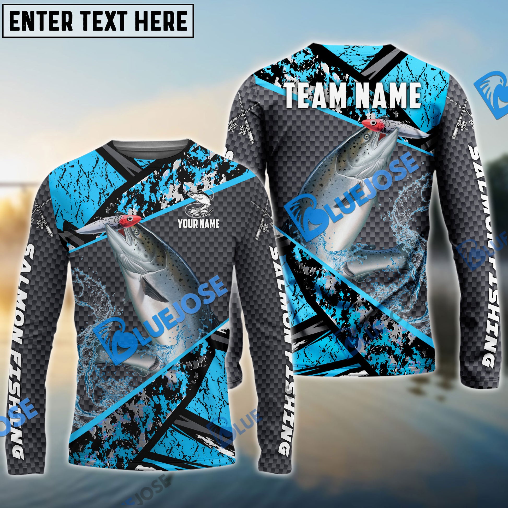 Bluejose Salmon Fishing Blue Camo 2 Sport Custom Name & Team Name 3D Shirts