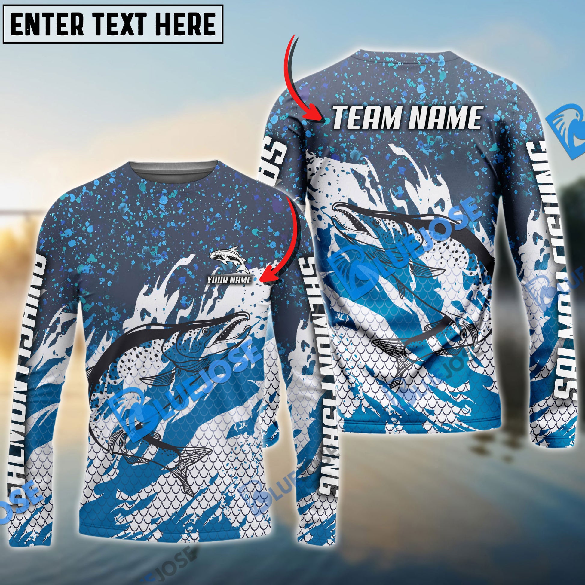 Bluejose Salmon Fishing Bluefin Sport Custom Name & Team Name 3D Shirts