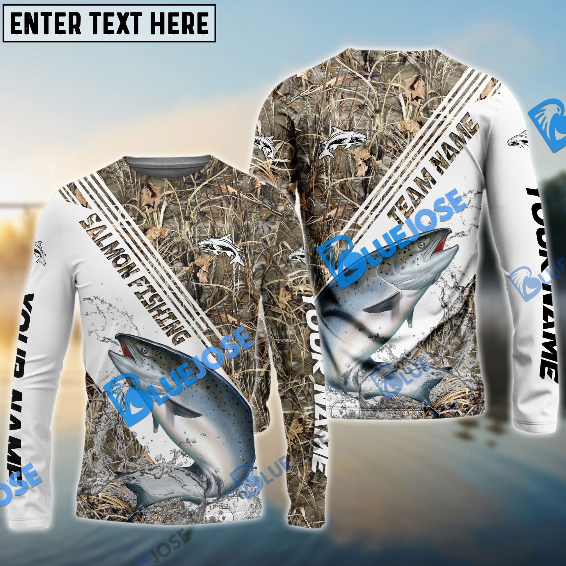 Bluejose Salmon Fishing White And Grass Camo Sport Custom Name & Team Name 3D Shirts
